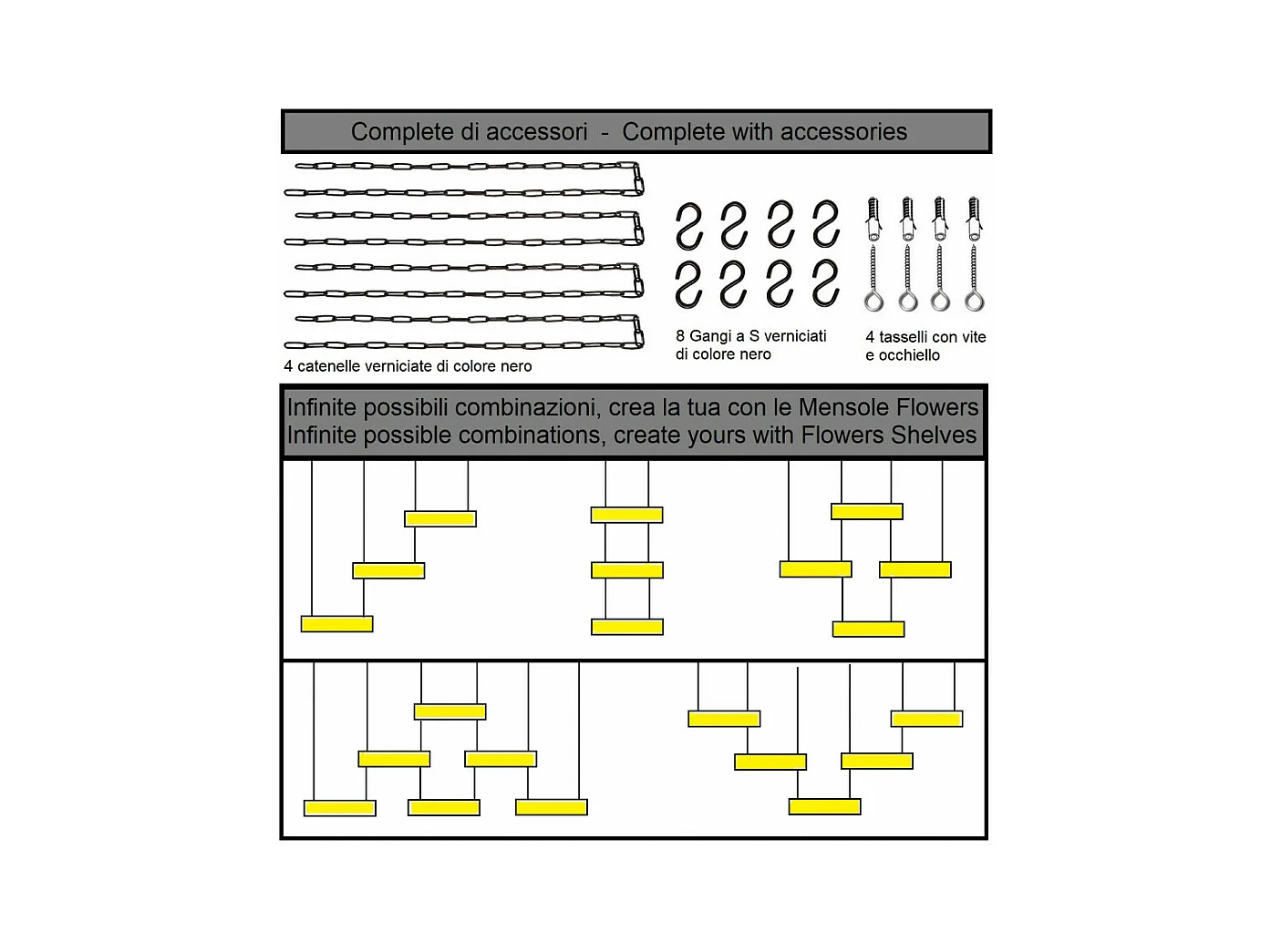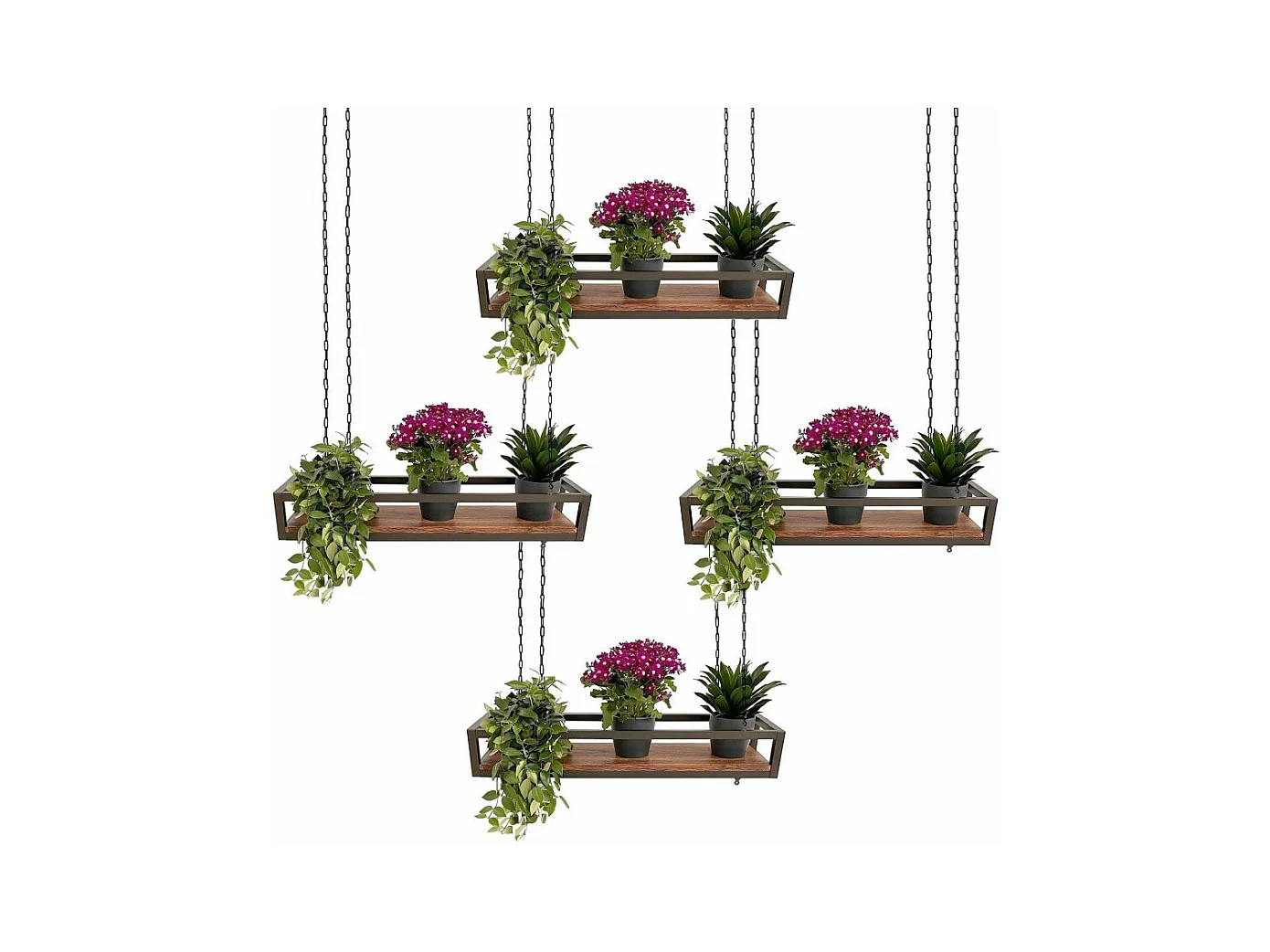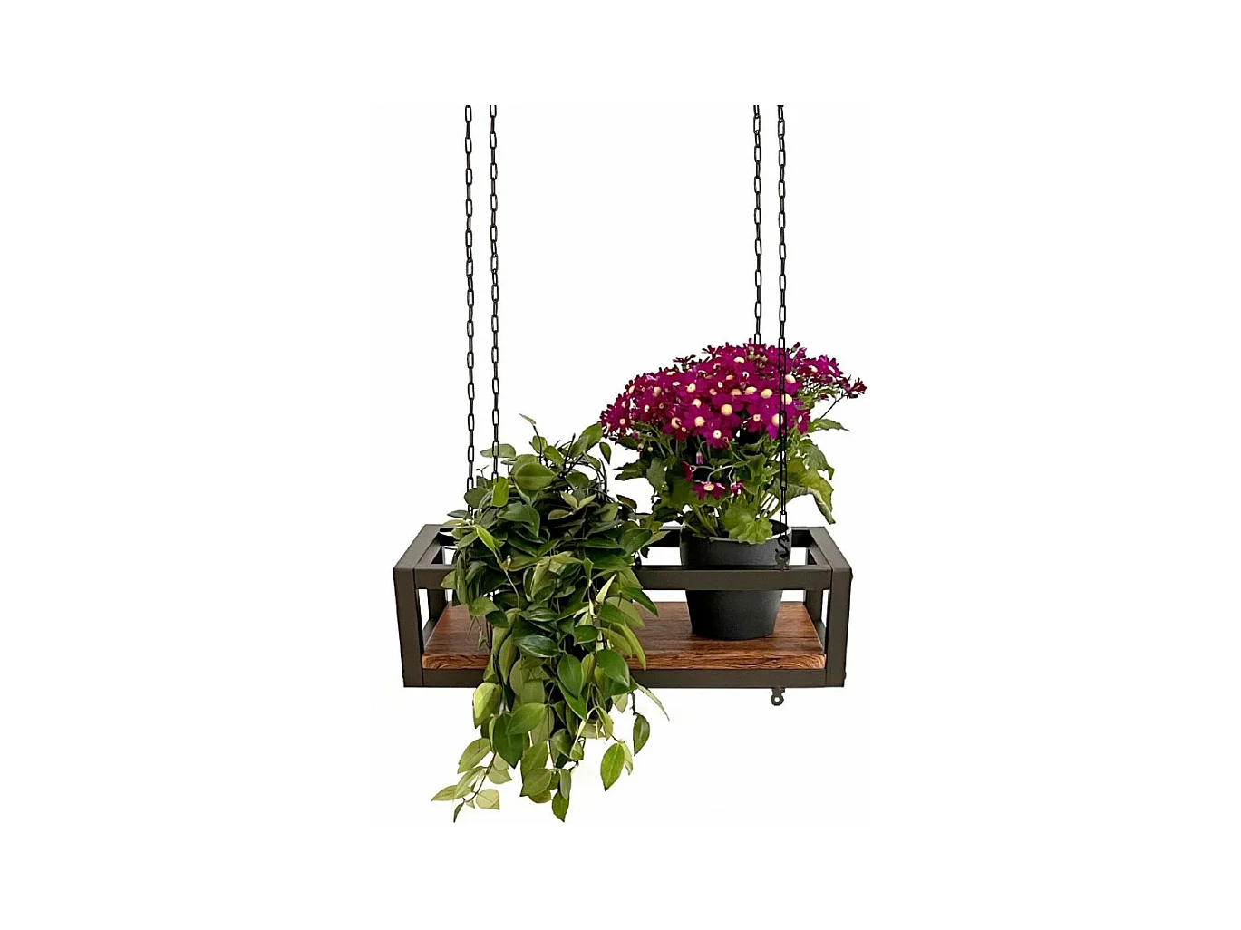 Etagère suspendue au plafond FLOWERS MARRON longueur 55 cm avec chaînes pour jardin vertical fleurs par Yelloo