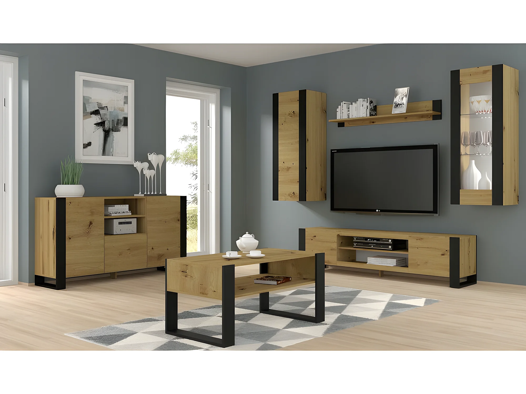 Étagère mural à suspendre Chêne artisan/noir mat Anette 115x20x20cm (LxPxH)