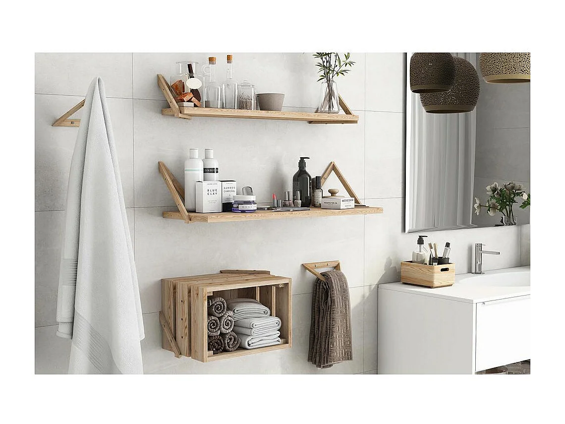 Etagère tablette murale en pin brut (Lot de 2)