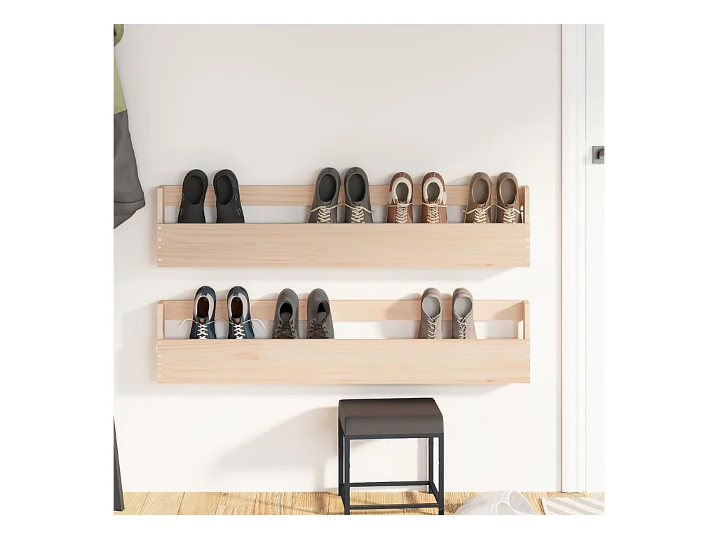 Étagères à chaussures murales 2 pcs 59x9x23 Pin massif