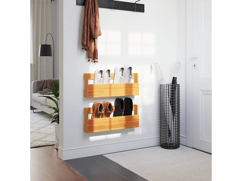 Étagères à chaussures murales 2 pcs marron 59x8,5x23,5