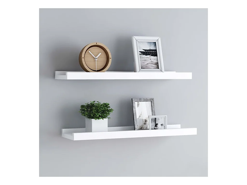 Étagères à rebord pour cadre photo 2 pcs Blanc 60x9x3 cm MDF OFR70212 BonneVie Meuble