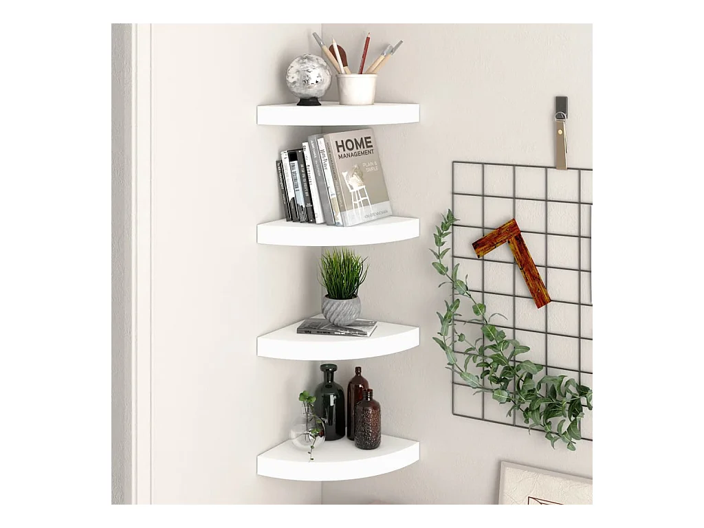 Étagères d'angle murales 4pcs blanc brillant 25x25x3,8cm MDF OFR87695 BonneVie Meuble