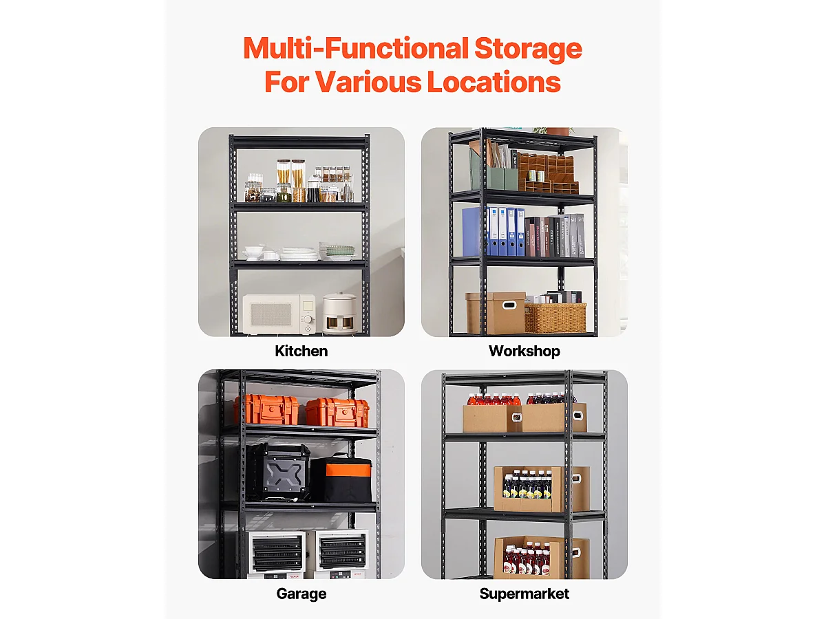 Étagères de Rangement SucceBuy, Étagère de Garage 5 Niveaux Réglable, Robuste 907kg