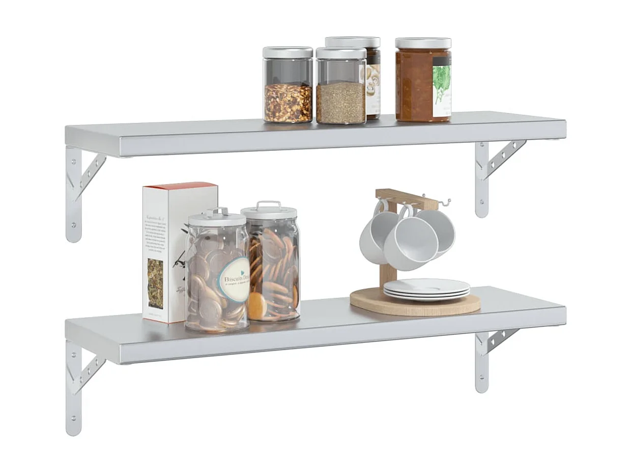 Étagères murales 2 pcs 100x23,5 cm argenté acier inoxydable FR116319