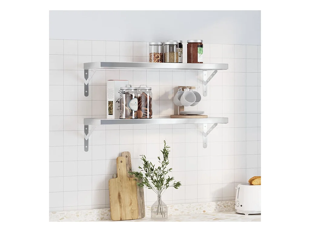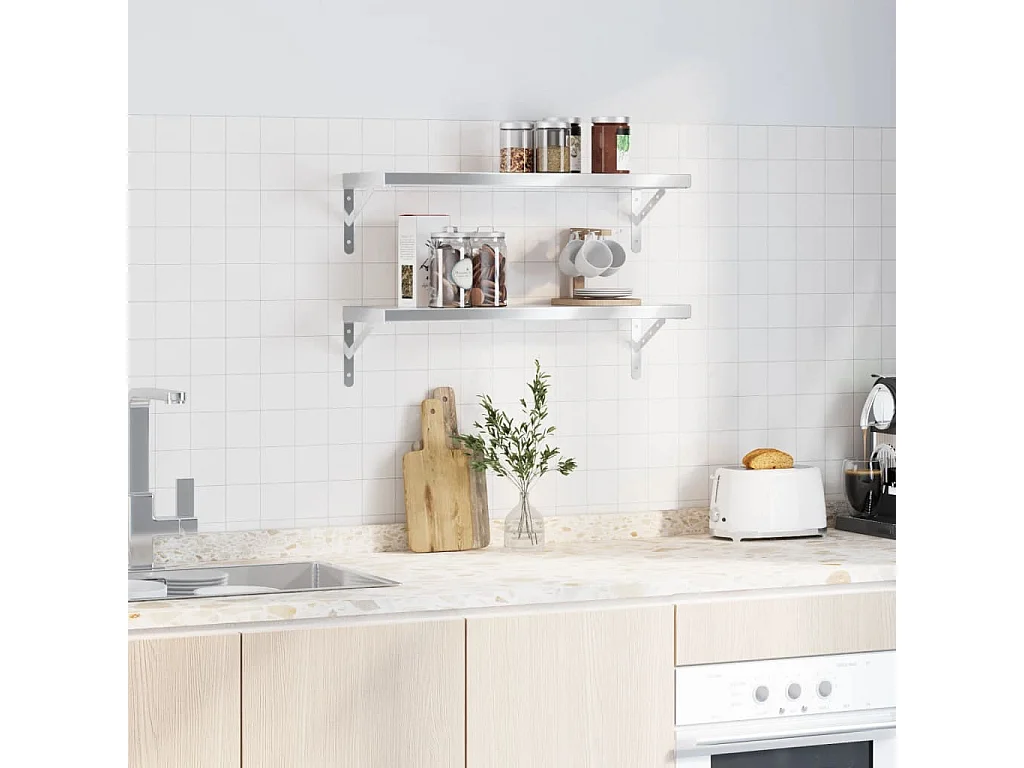 Étagères murales 2 pcs 75x23,5 cm argenté acier inoxydable FR200000