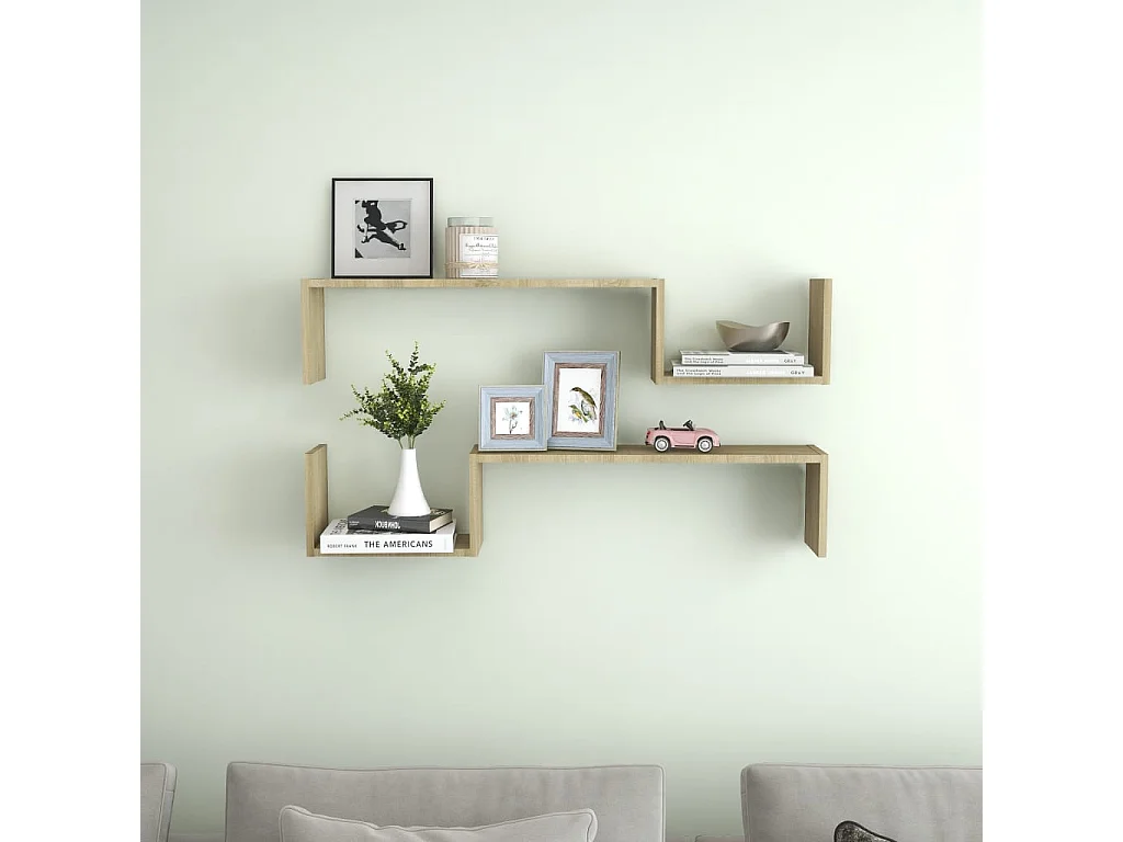 Étagères murales 2pcs chêne sonoma 80x15x15,5 bois ingénierie
