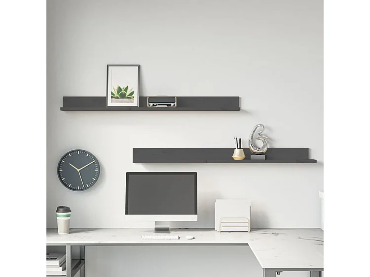 Étagères murales 2 pcs Gris 80x11x9 Bois de pin massif