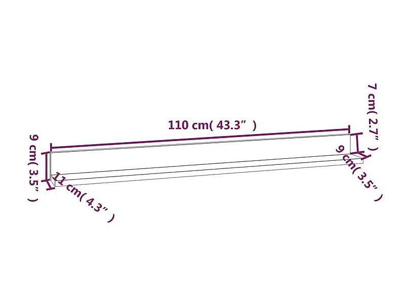 Étagères murales 2 pcs Gris 110x11x9 Bois de pin massif
