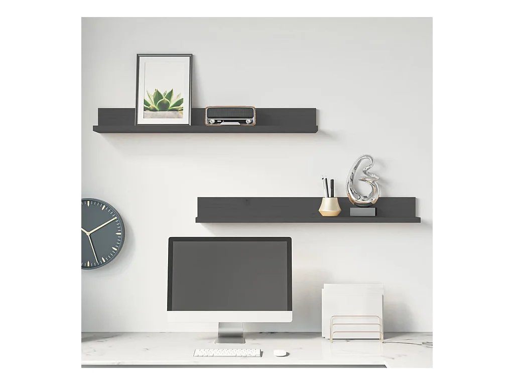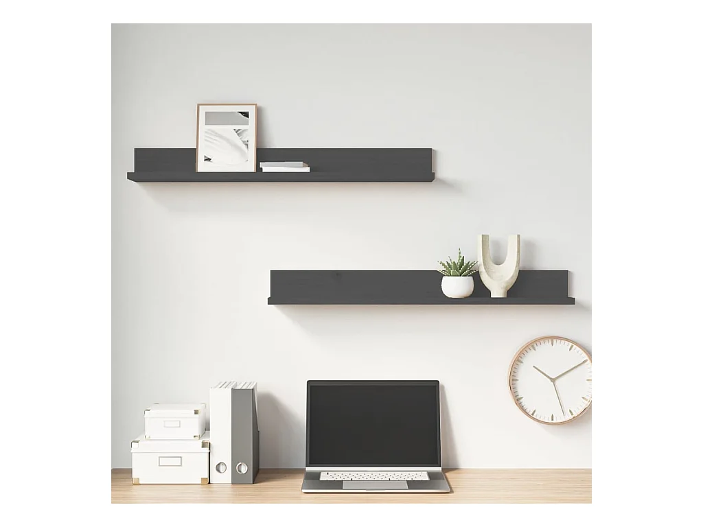 Étagères murales 2 pcs Gris 110x12x9 cm Bois de pin massif OFR30227 BonneVie Meuble