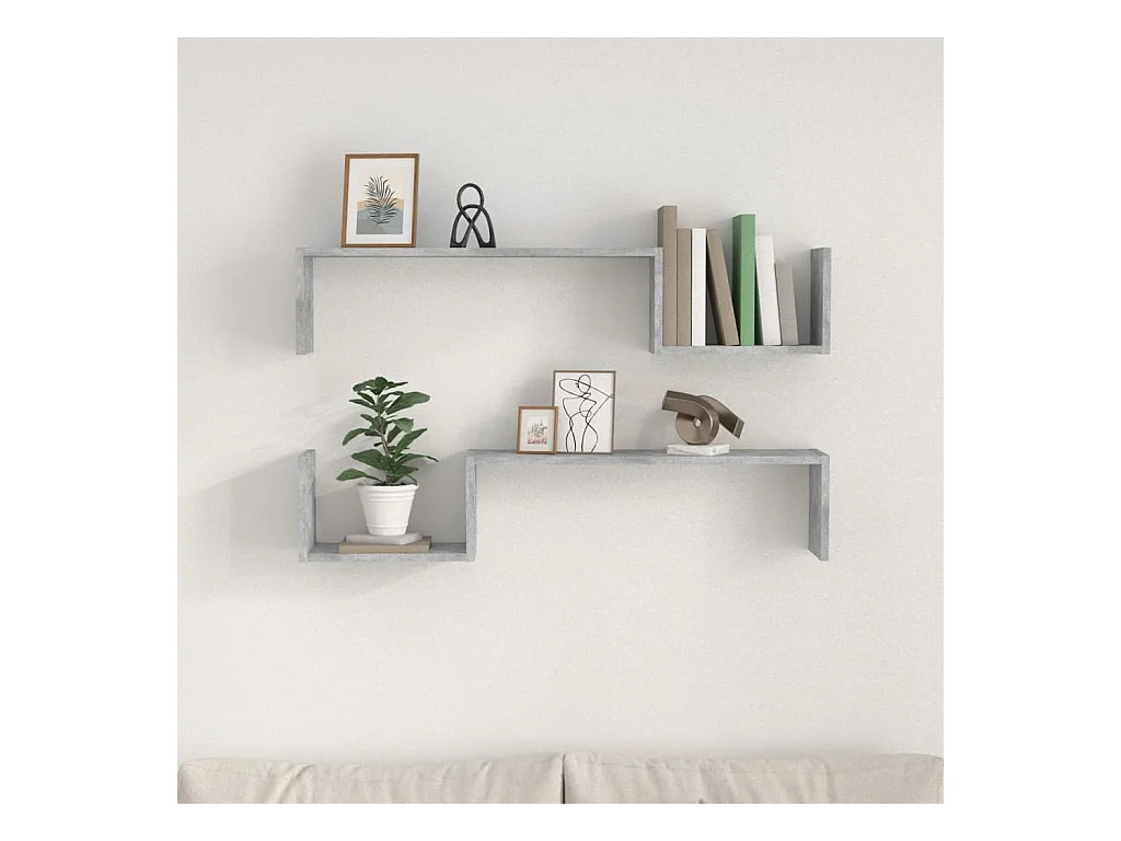 Étagères cube murales 2 pcs Gris béton 60x15x23 cm Aggloméré OFR83797 BonneVie Meuble