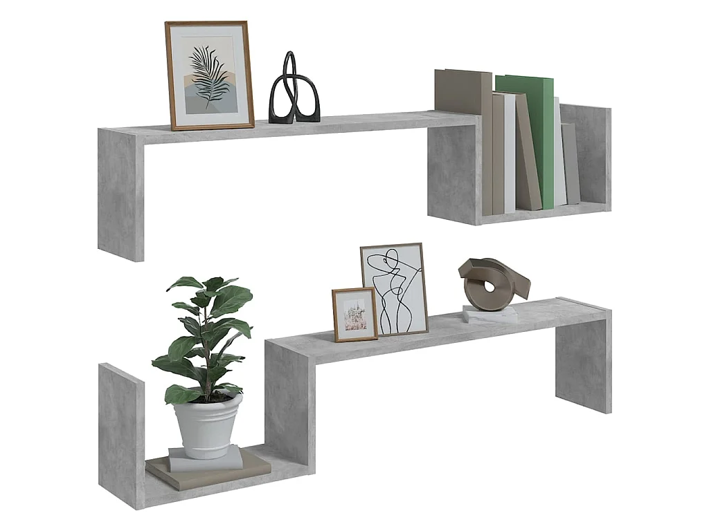 Étagères cube murales 2 pcs Gris béton 100x15x30 cm Aggloméré OFR65269 BonneVie Meuble