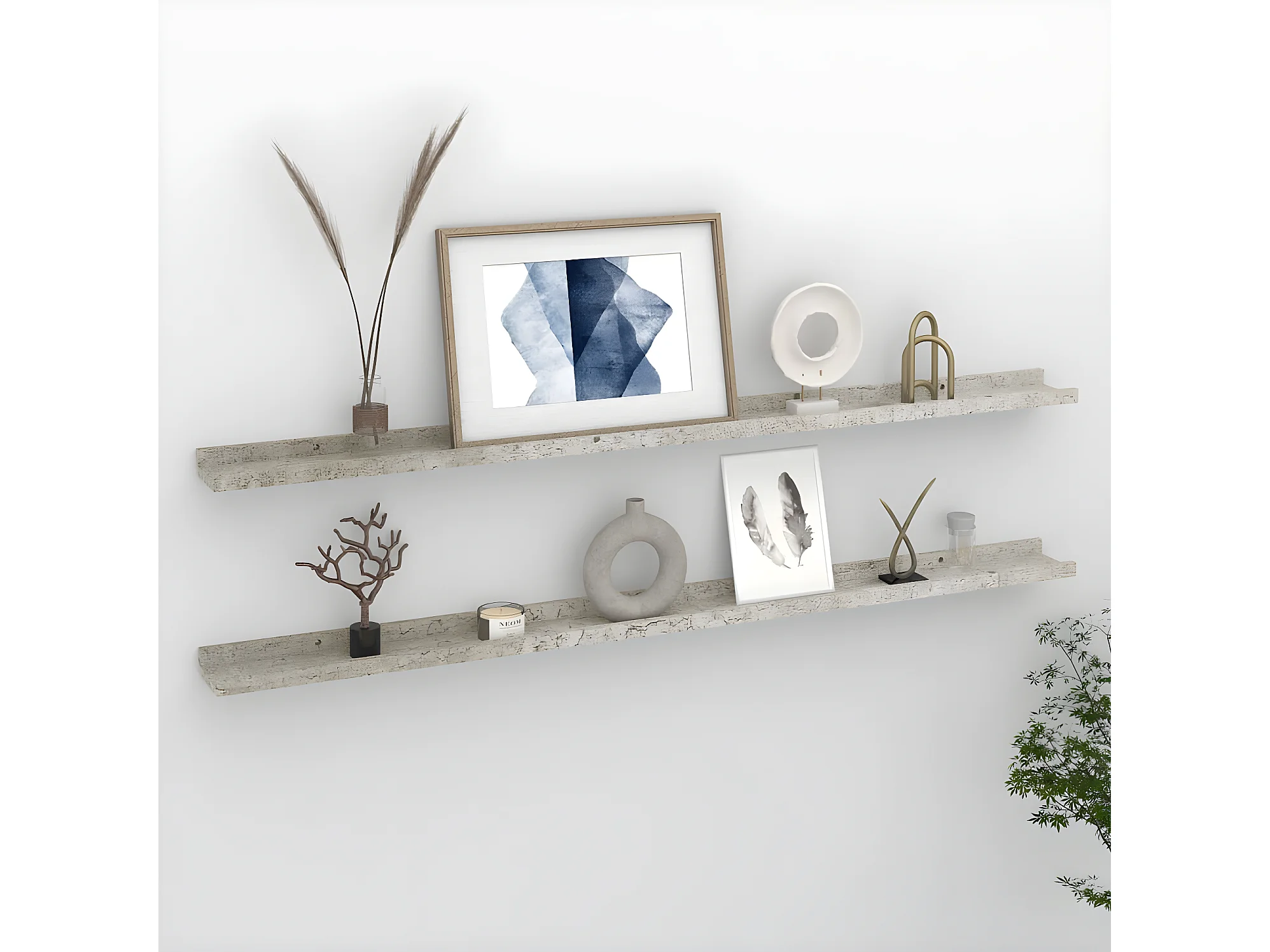 Lot de 2 Étagères murales Gris béton 115x9x3 cm FR34730