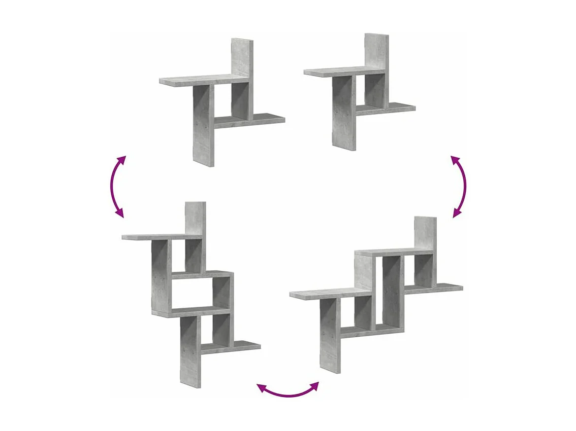 Étagères murales 2 pcs gris béton 38x12x38 bois d'ingénierie