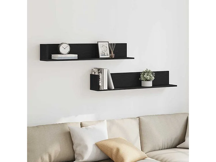 Étagères murales 2 pcs noir 75x16,5x16,5 bois d'ingénierie