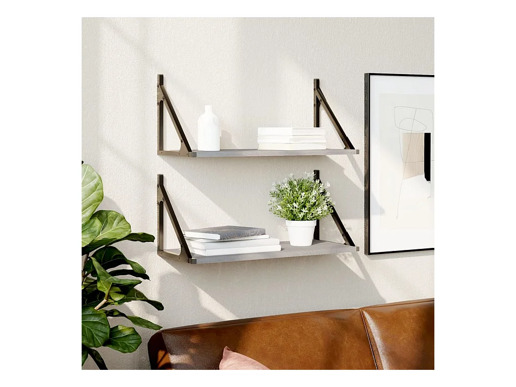 Étagères murales 2pcs sonoma gris 60x25x25,5 cm bois ingénierie OFR79864 BonneVie Meuble