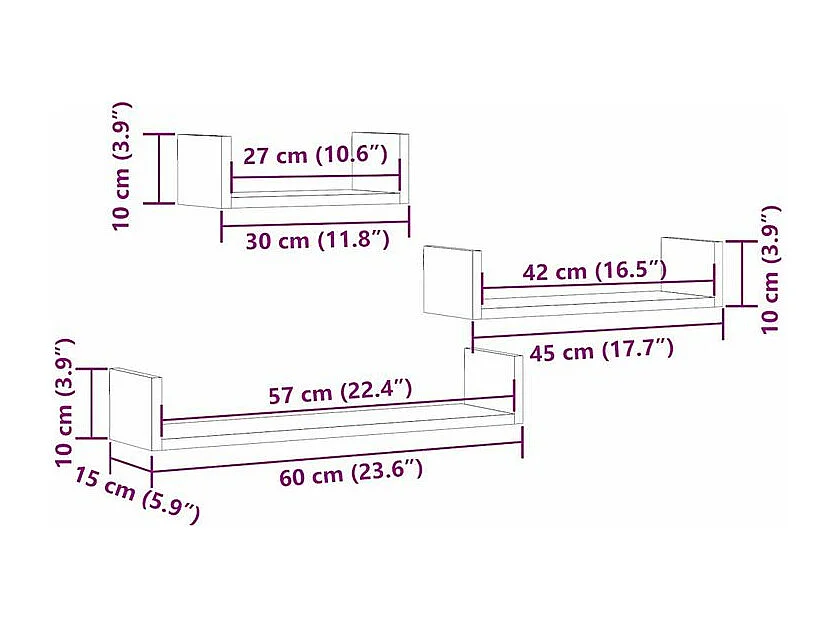 Étagères murales 3 pcs chêne artisanal bois d'ingénierie