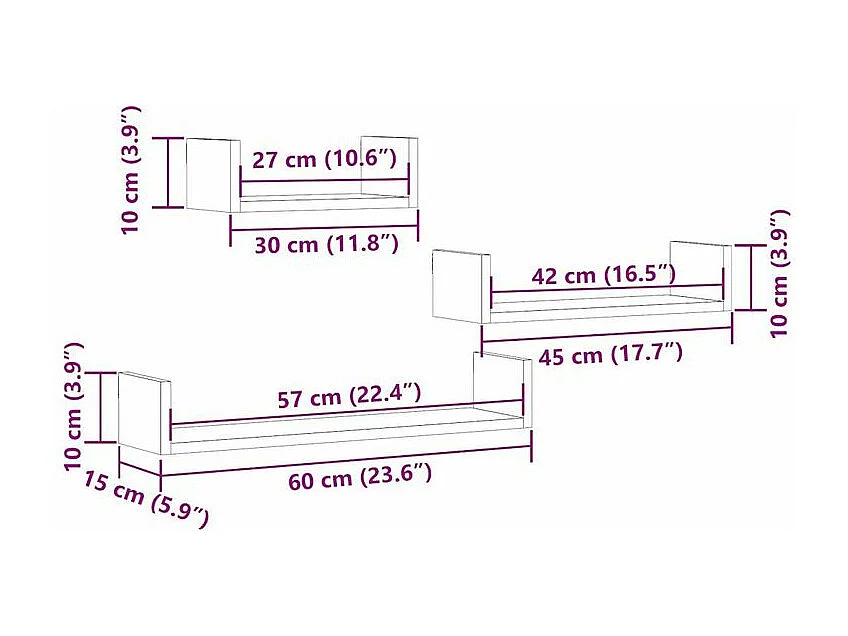 Étagères murales d'affichage3pcs Chêne marron Bois d'ingénierie