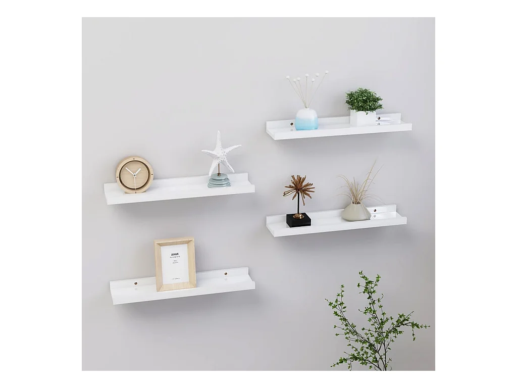 Étagères murales 4 pcs Blanc brillant 40x9x3 cm OFR88414 BonneVie Meuble