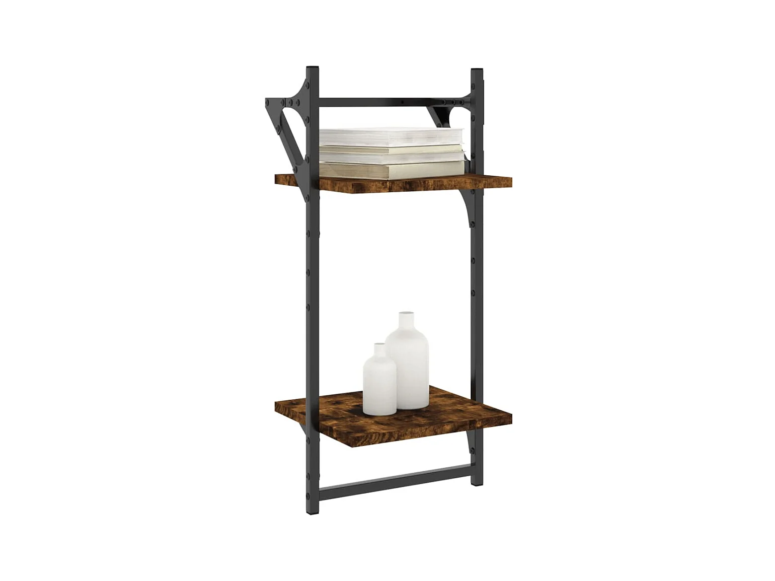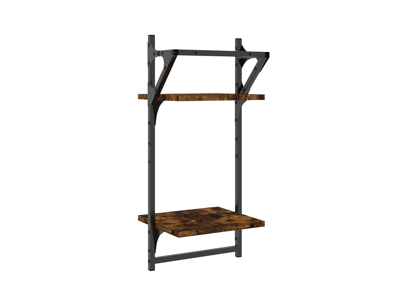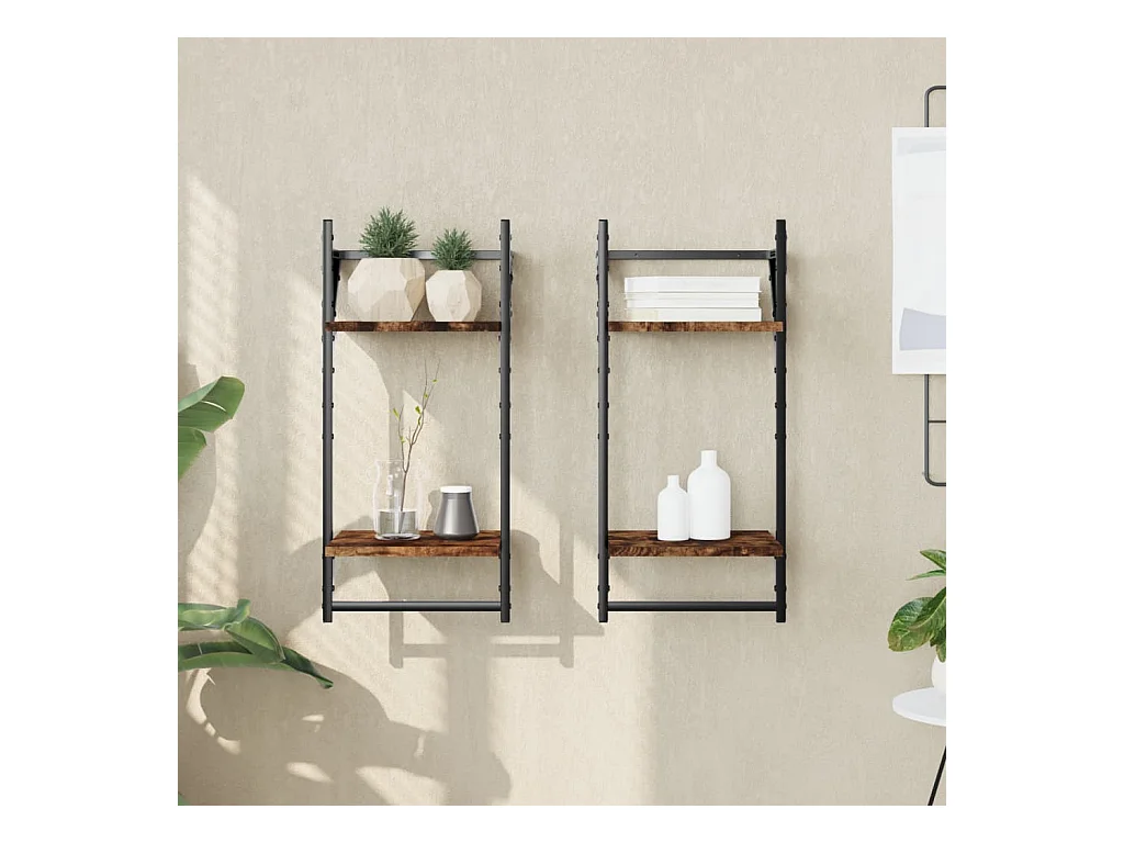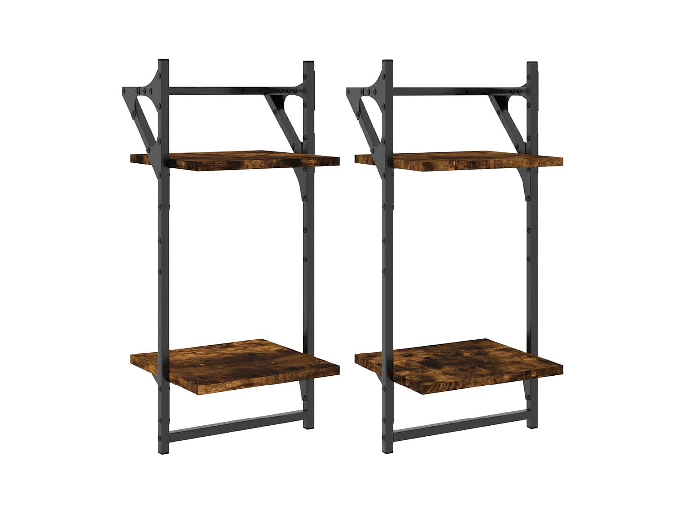 Étagères murales à 2 niveaux avec barres 2 pcs chêne fumé