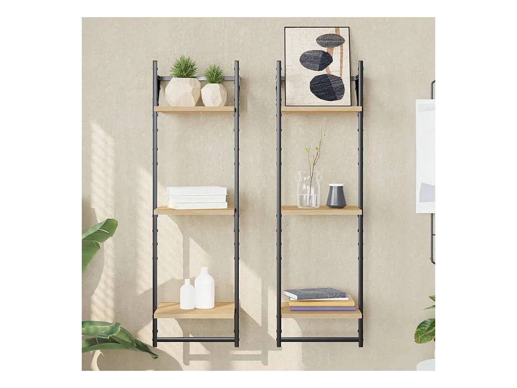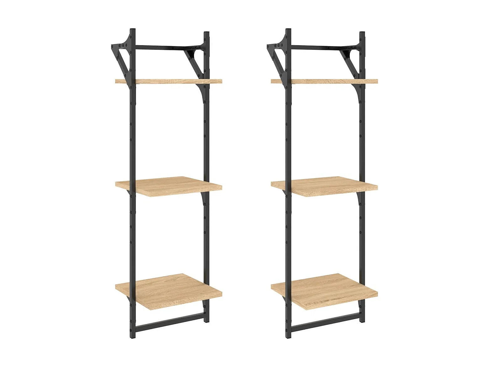 Étagères murales à 3 niveaux avec barres 2 pcs chêne sonoma