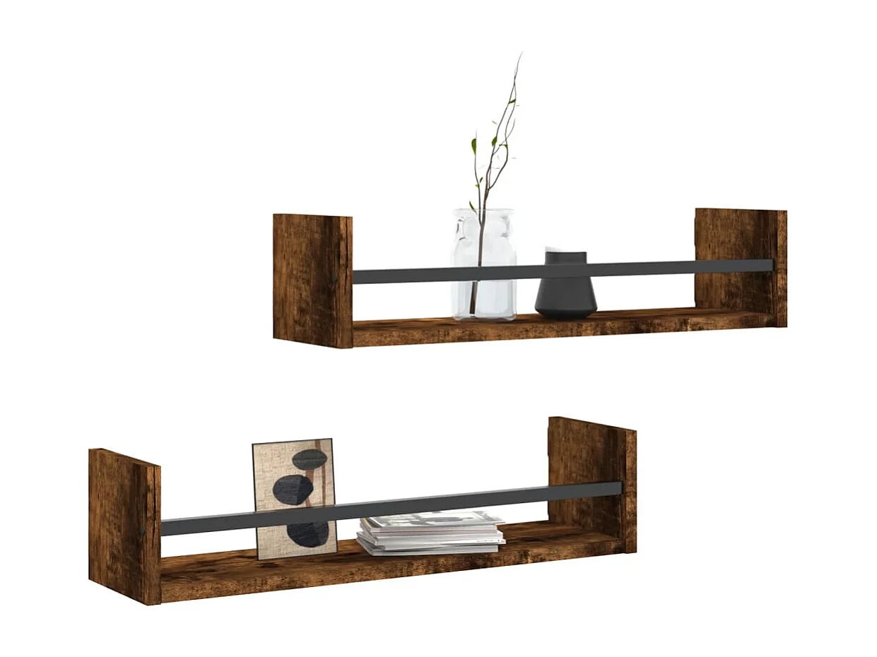 Étagères murales 2pcs chêne fumé 60x25x25,5 bois d'ingénierie