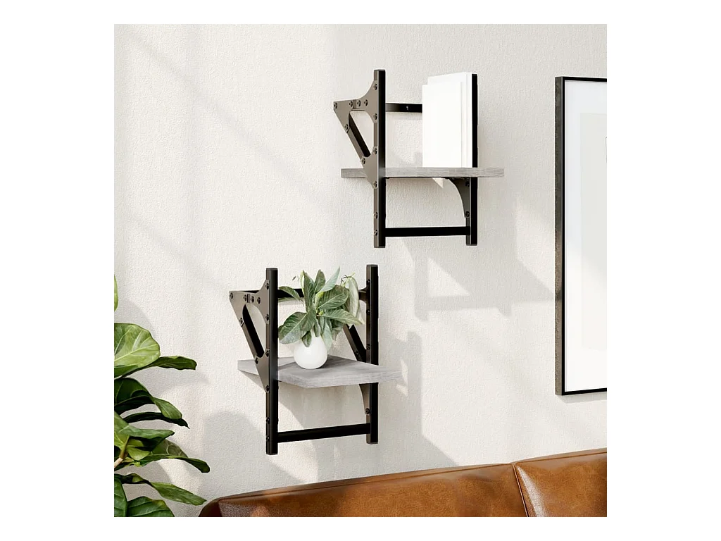 Étagères murales avec barres 2 pcs sonoma gris 30x25x30 cm OFR82133 BonneVie Meuble