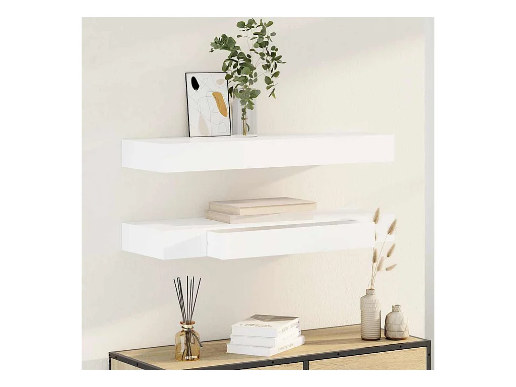 Étagères à tiroirs murales 2 pcs Blanc 60x23,5x10 cm MDF