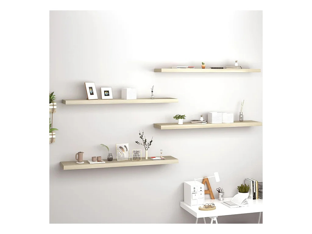 Étagères murales murales 4 pcs chêne 120x23,5x3,8 cm MDF OFR58541 BonneVie Meuble