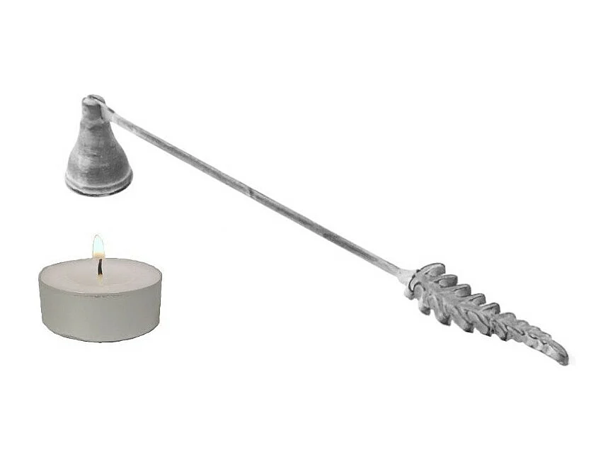 Eteignoir à bougie feuille métal gris vieilli 31 x 6 x 4 cm