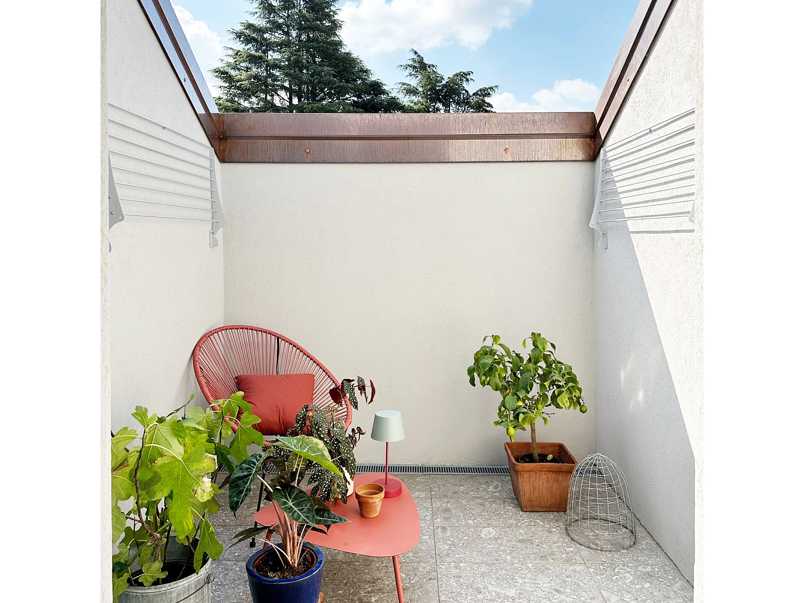Étendoir balcon pliable et inclinable anti-rouille – blanc – 82x63x8 cm DUO