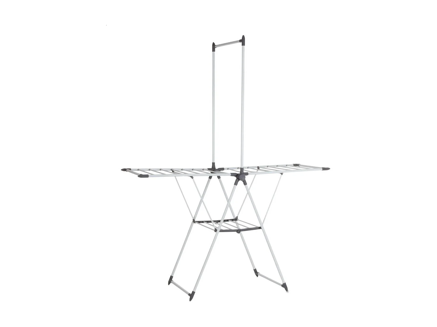 Séchoir à linge étendoir pliable ailes latérales 3 niveaux acier inox PP gris
