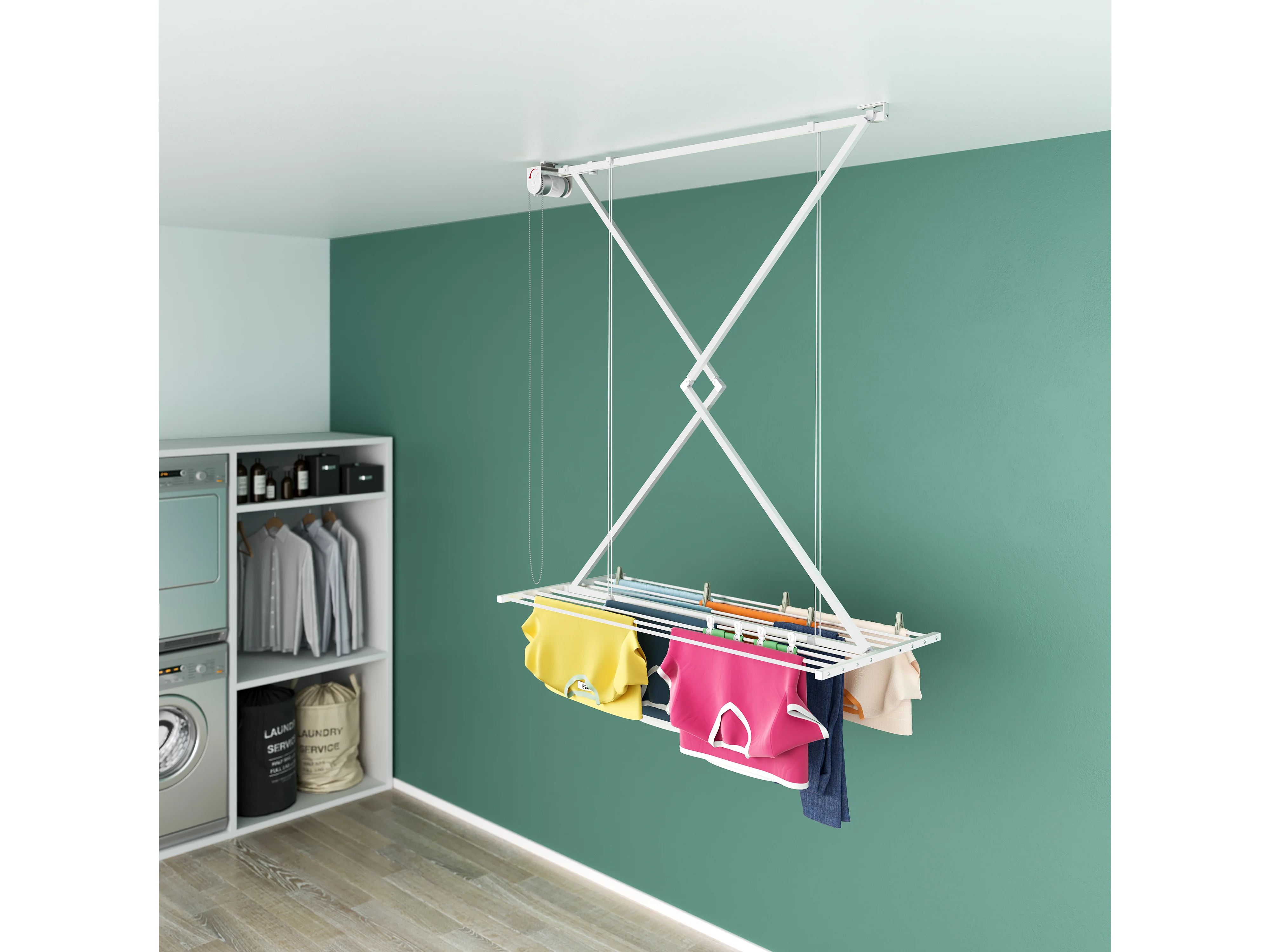 Étendoir de plafond manuel en aluminium résistant – blanc – 128x54x25 cm Mini 120