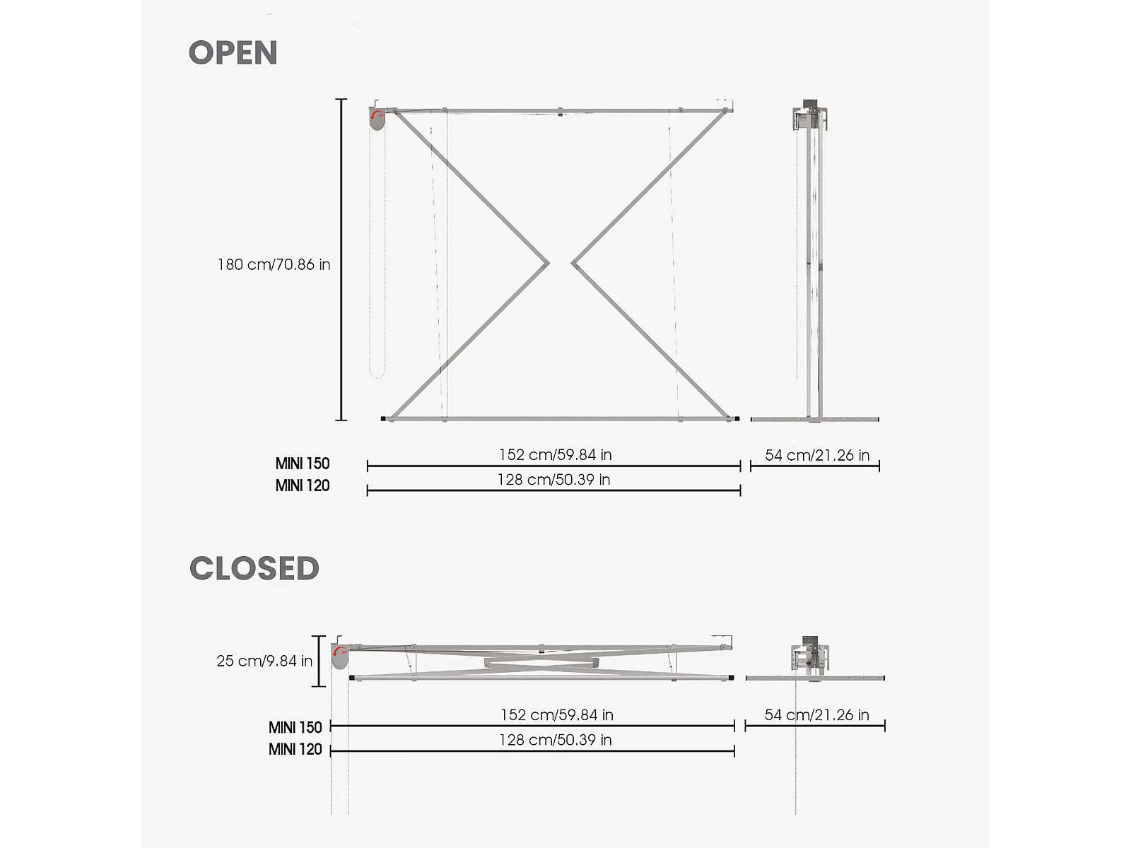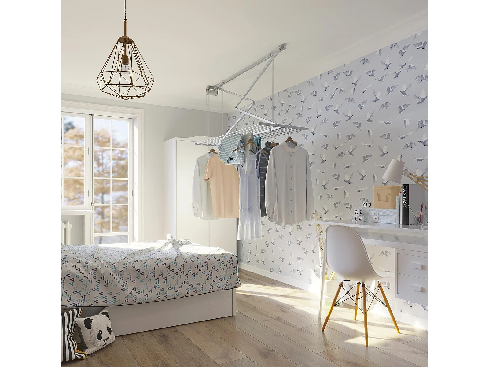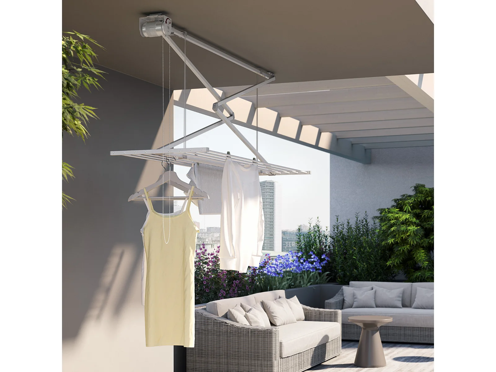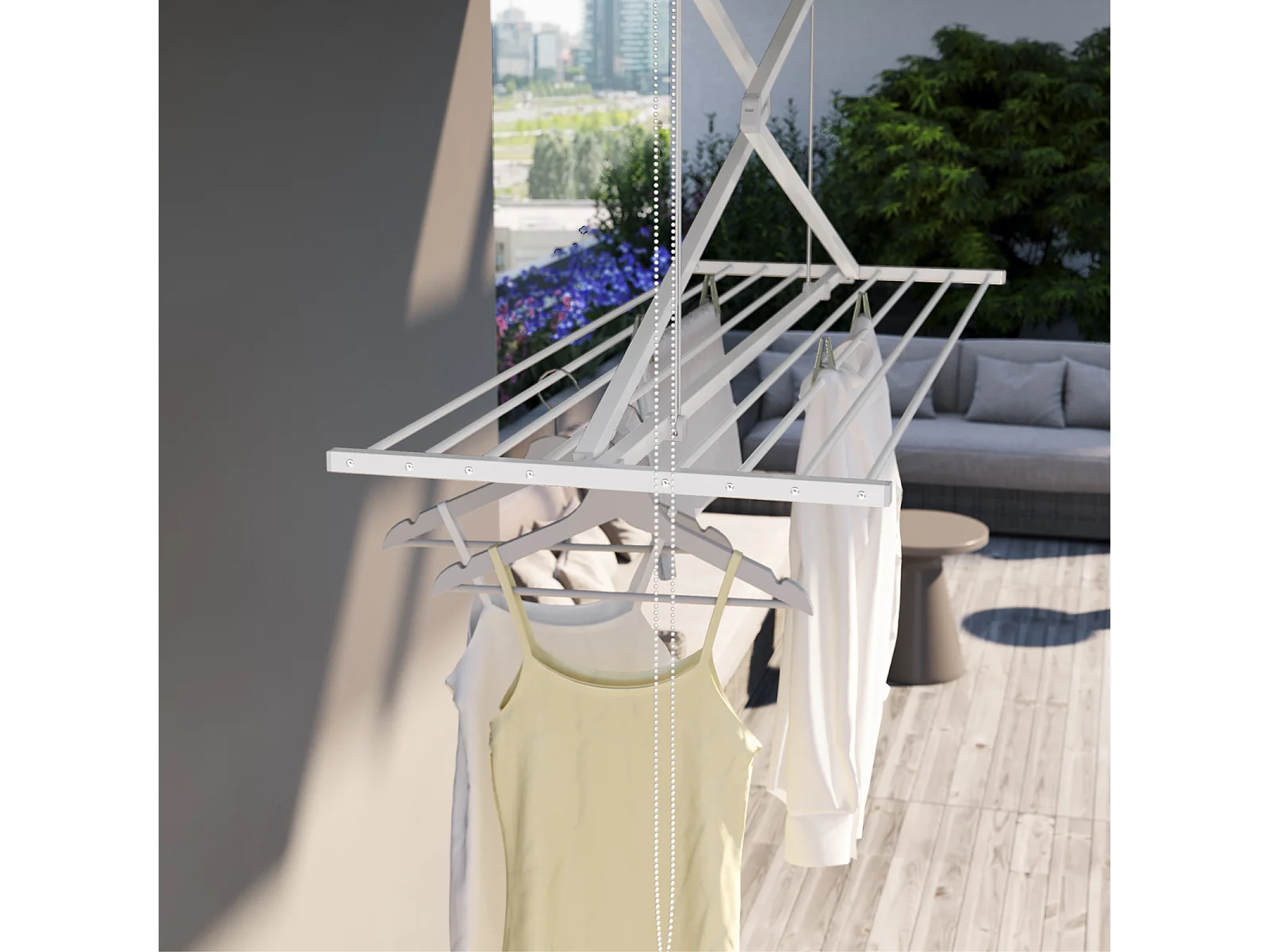 Étendoir de plafond manuel en aluminium résistant – blanc – 152x54x25 cm Mini 150