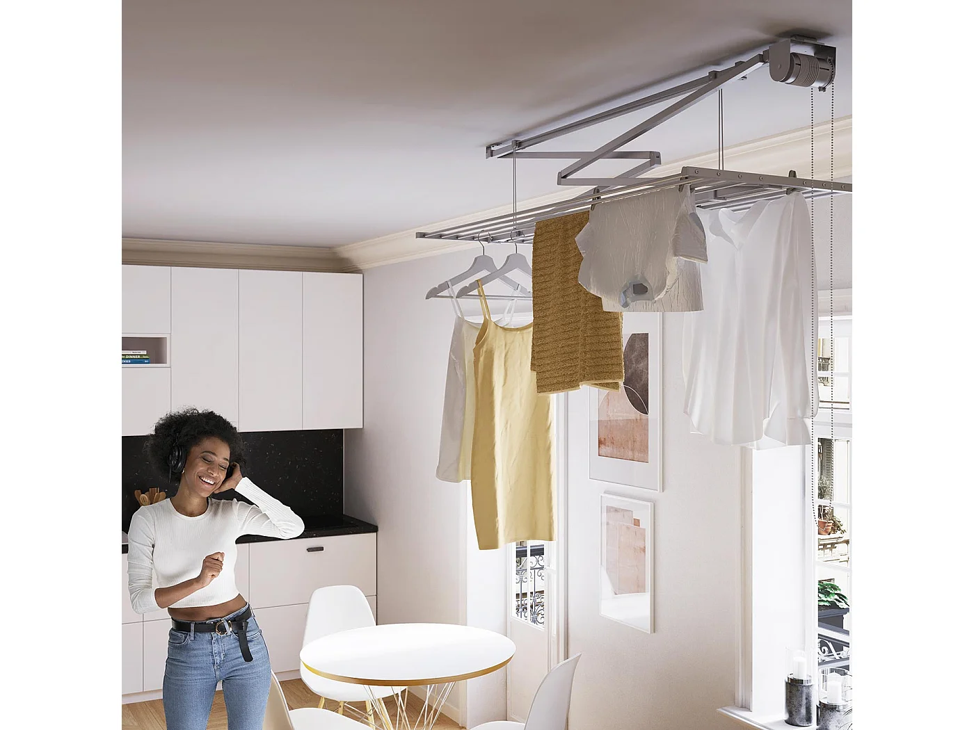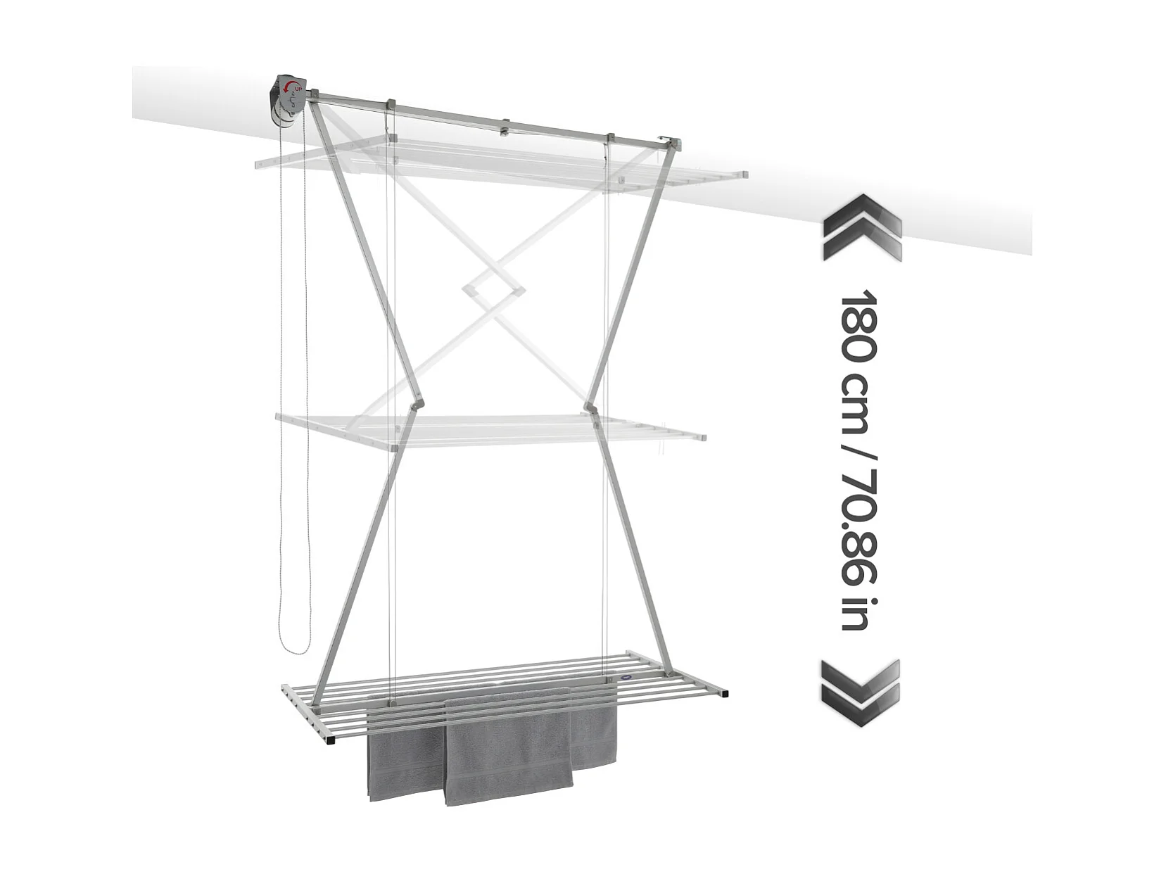 Étendoir de plafond manuel en aluminium résistant – gris – 152x54x25 cm Mini 150