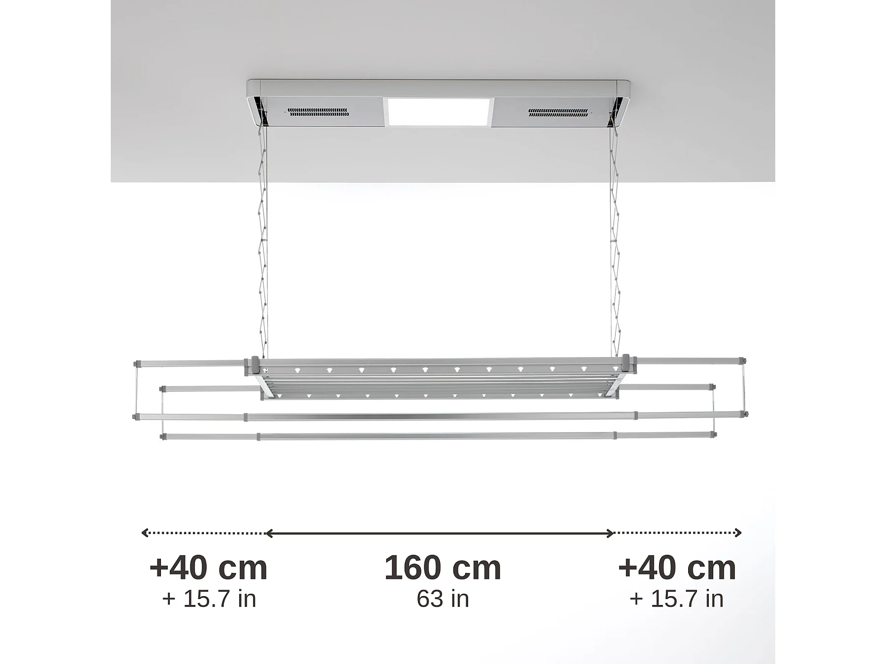 Étendoir électrique mur ou plafond en aluminium résistant – gris – 160x52x70 cm PRO 150
