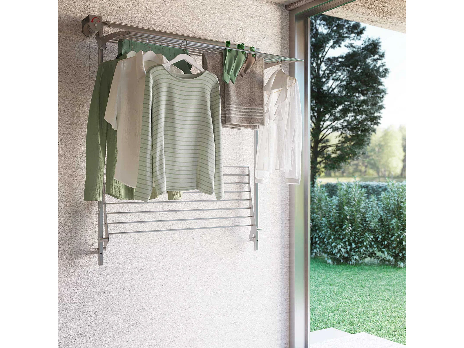 Étendoir mural 2 grilles aluminium résistant – blanc – 152x52x137 cm Wall Plus