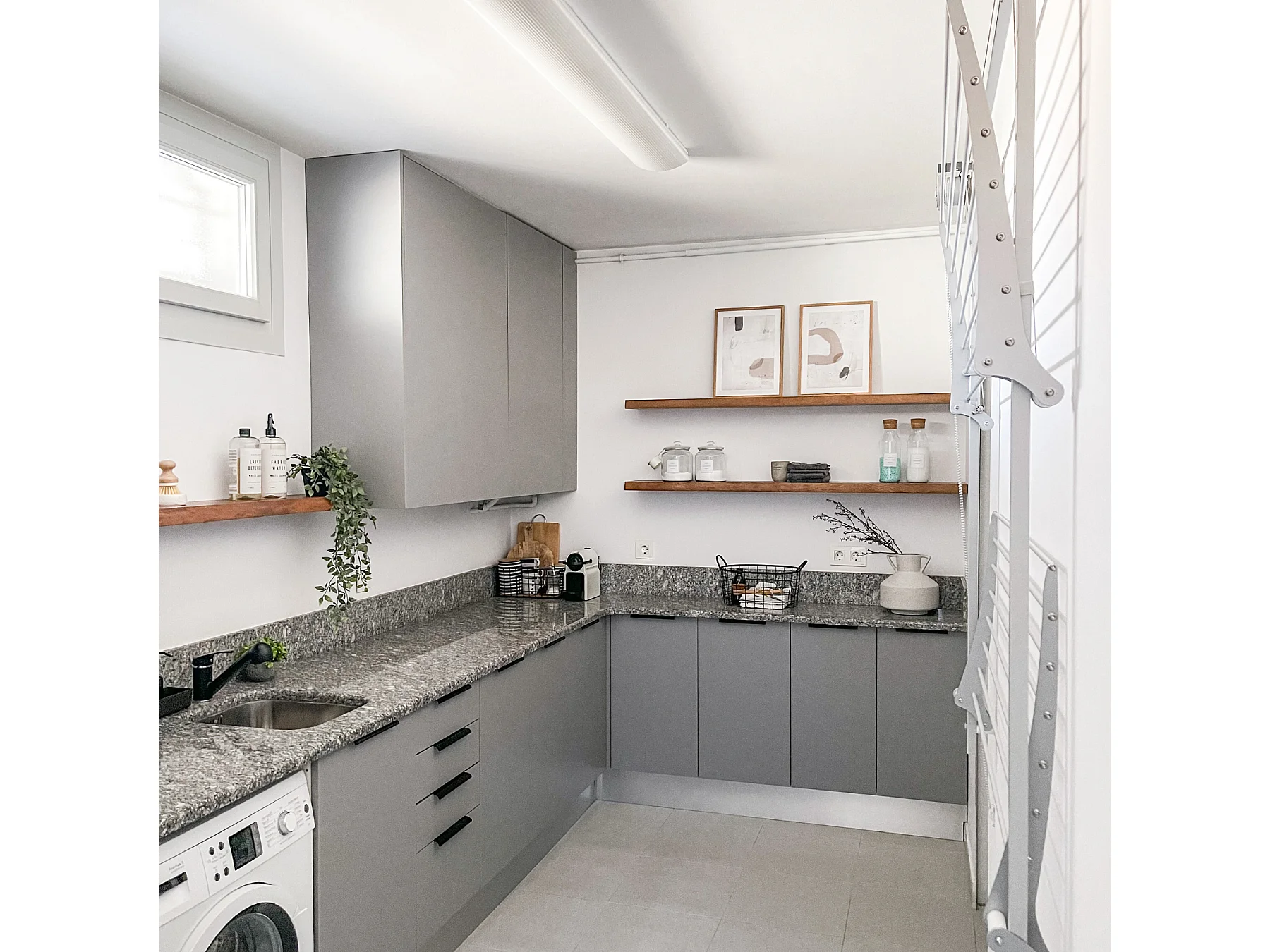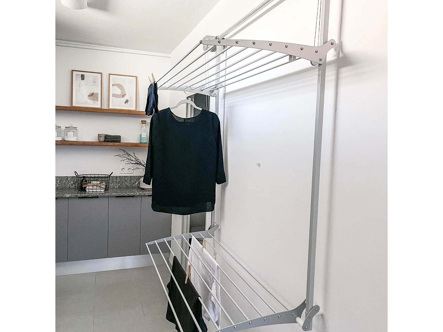 Étendoir mural 2 grilles aluminium résistant – blanc – 88x52x137 cm Wall Plus