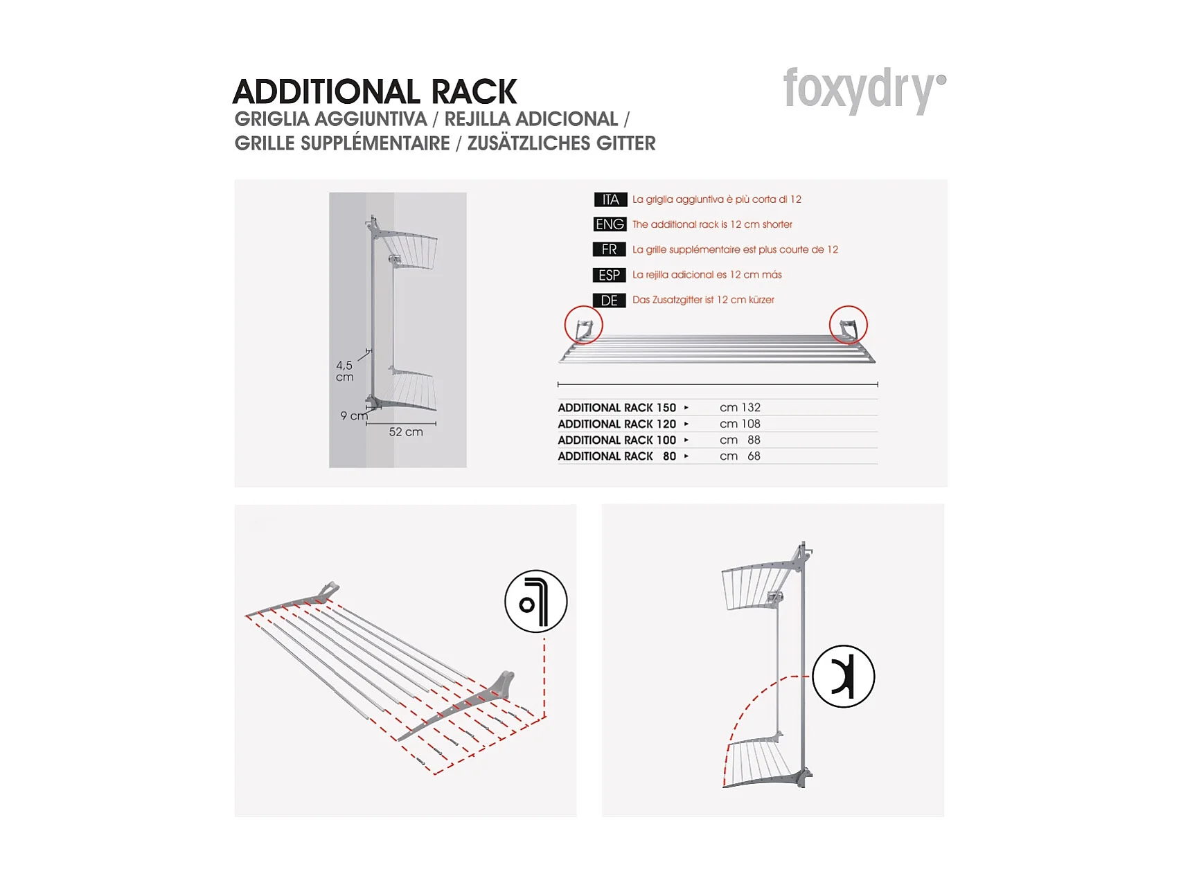 Étendoir mural 2 grilles pliable et réglable en hauteur – gris – 152x52x137 cm Wall Plus