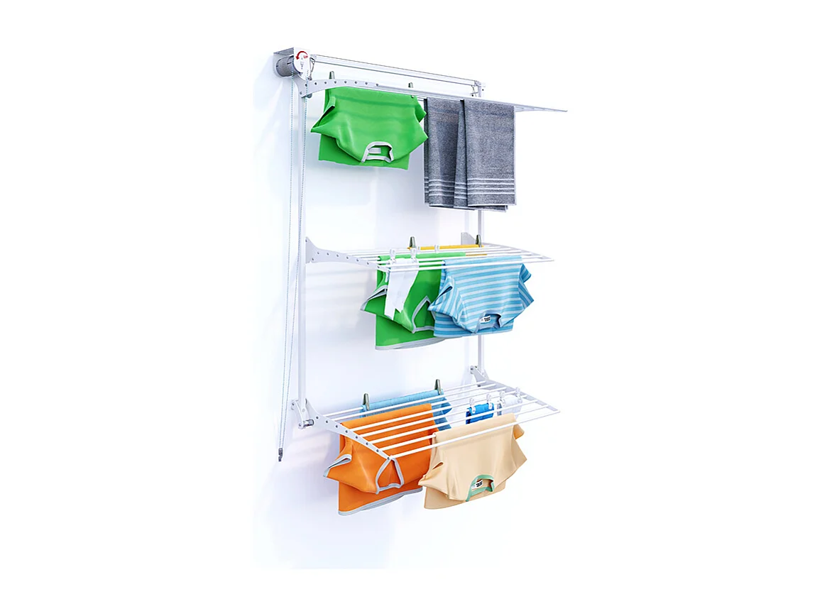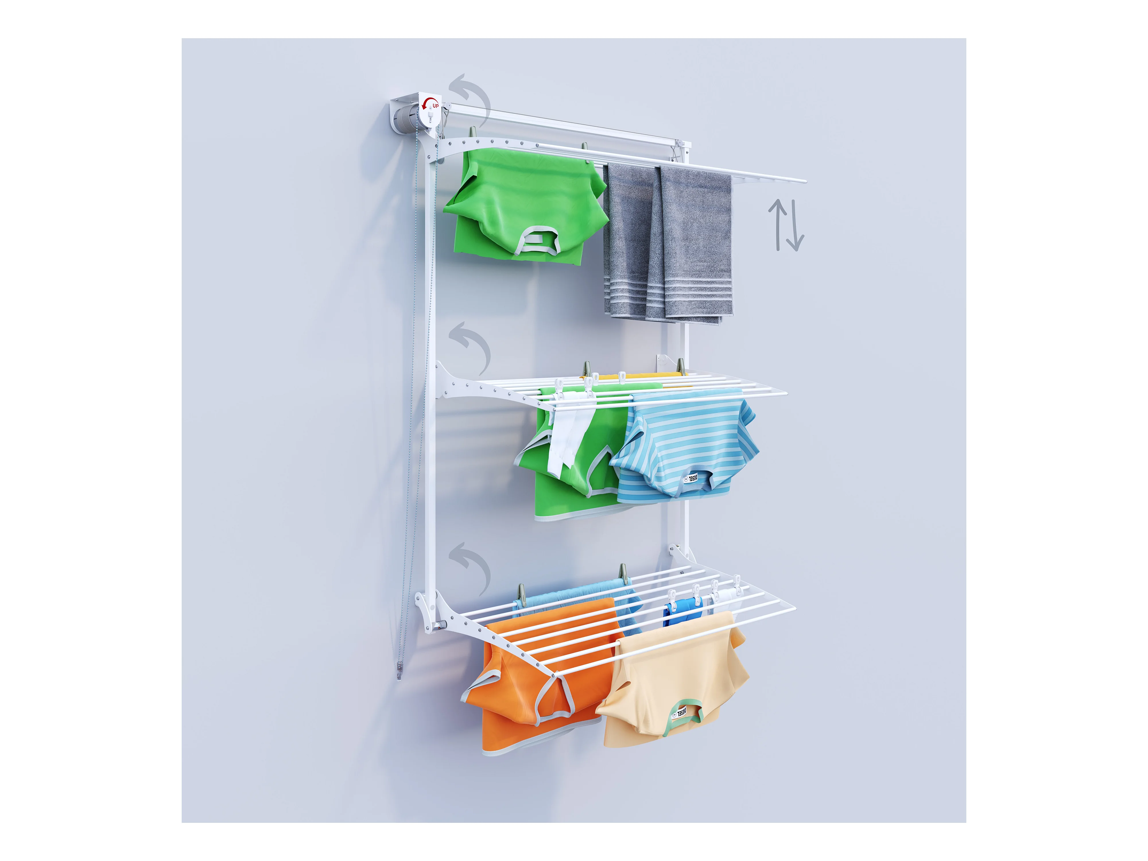 Étendoir mural 3 grilles aluminium résistant – blanc – 108x52x137 cm Tower