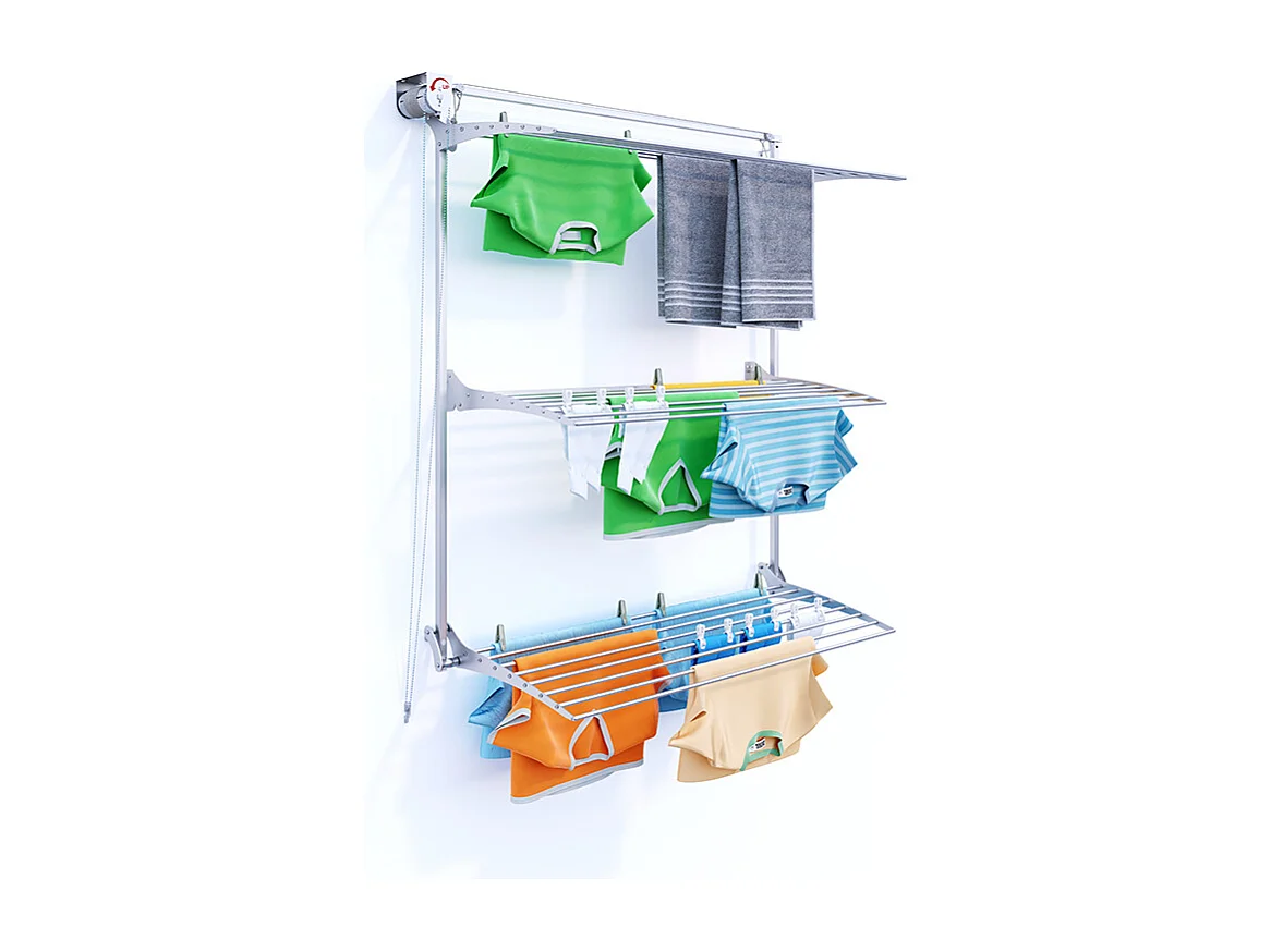 Étendoir mural 3 grilles aluminium résistant – gris – 128x52x137 cm Tower