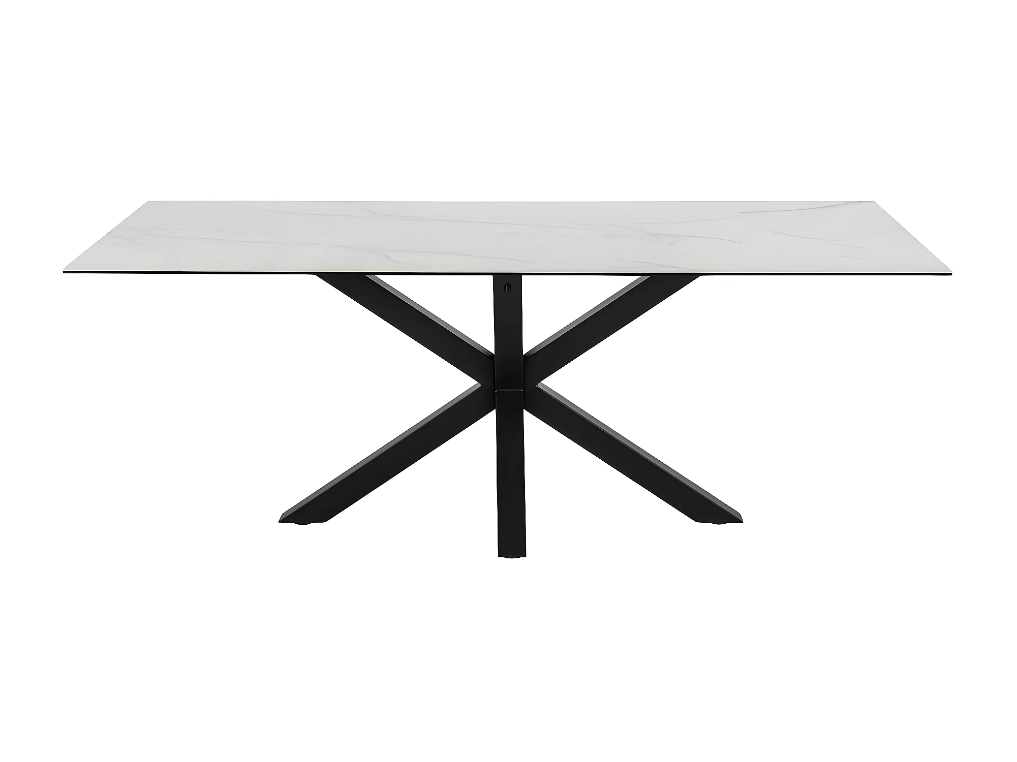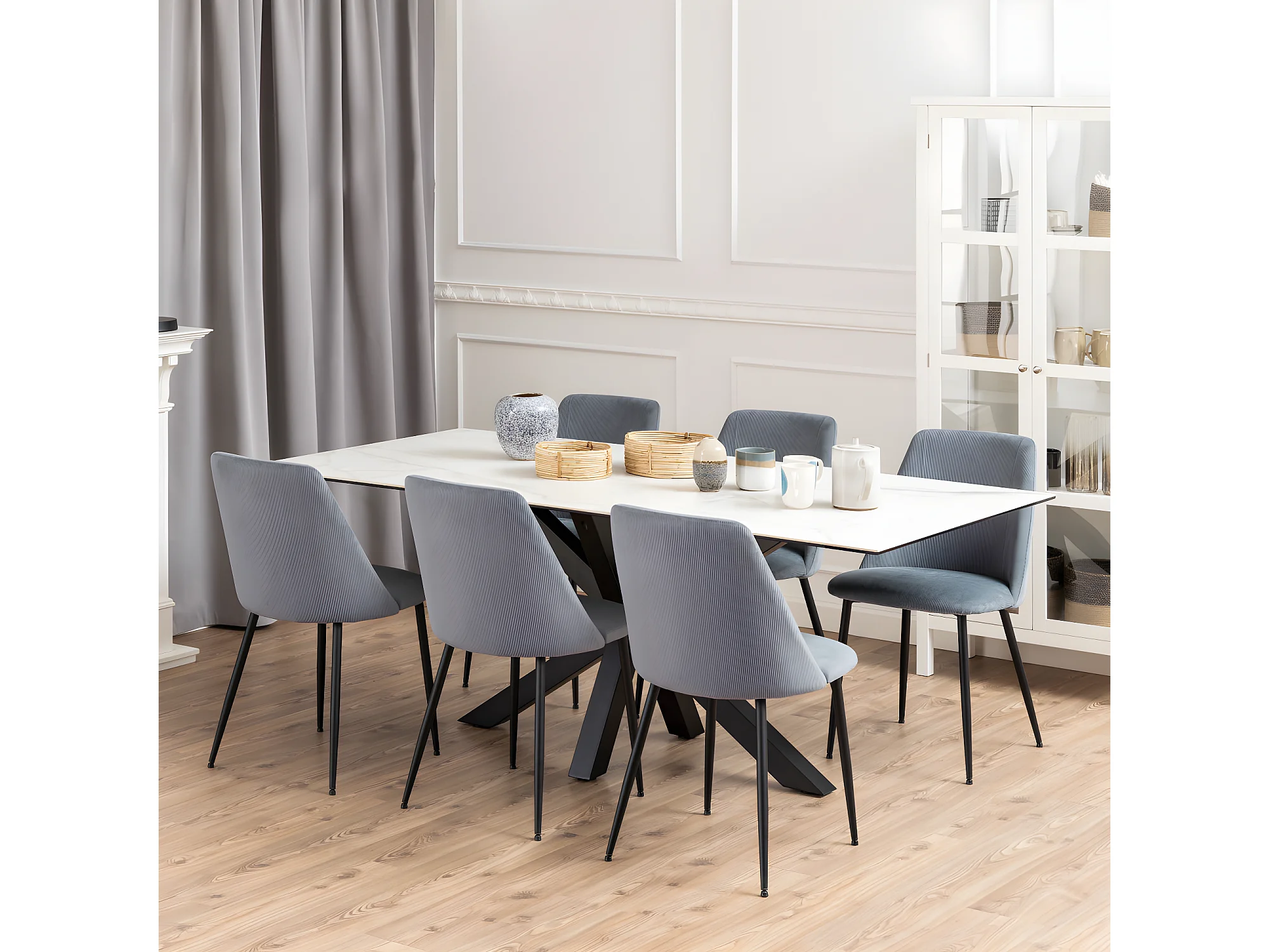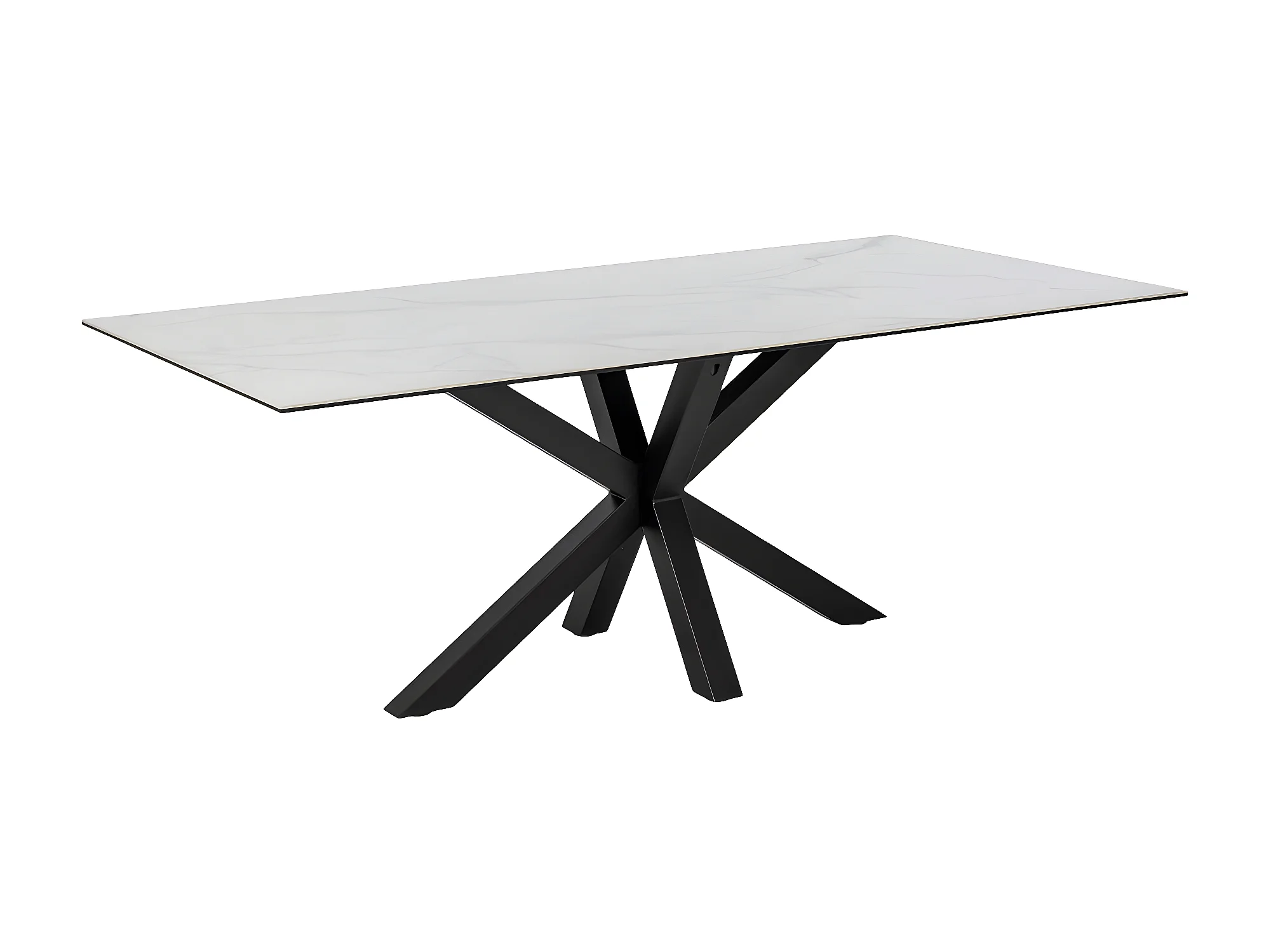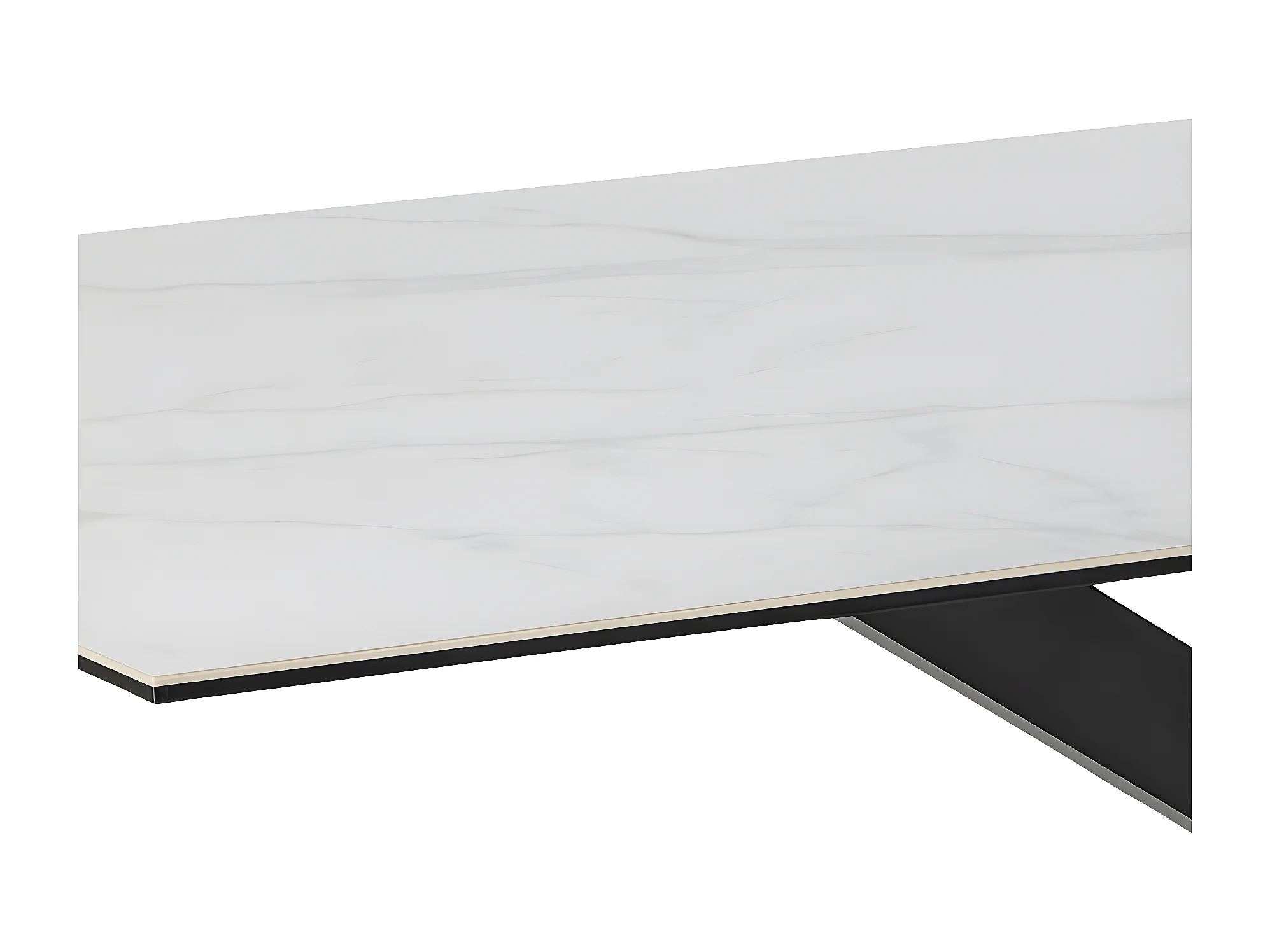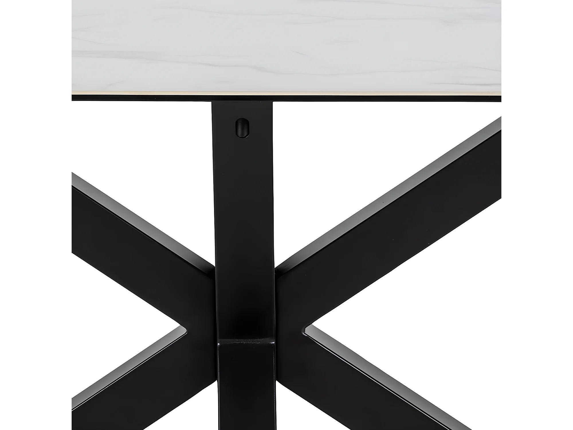 Eurame - Table à manger 8 personnes en céramique et métal - Blanc