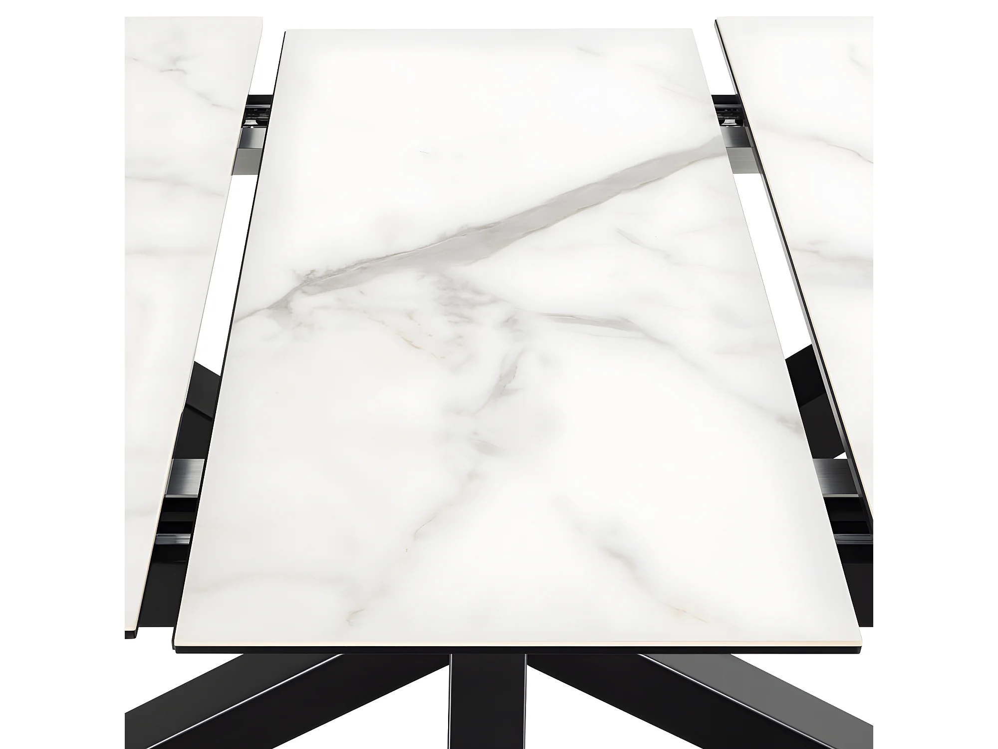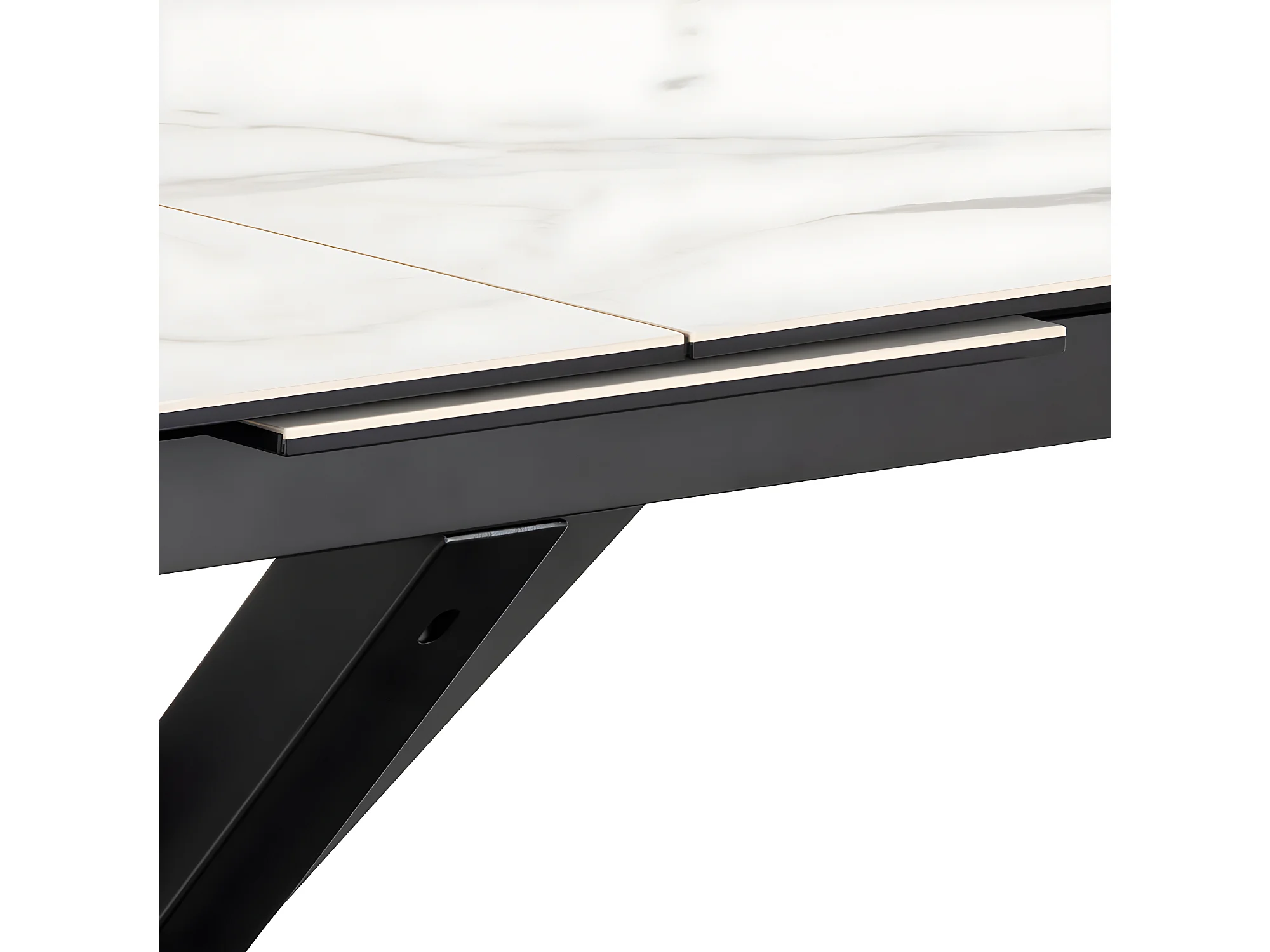 Eurame - Table à manger extensible 6 à 8 places en céramique et métal 168-210x90cm - Blanc