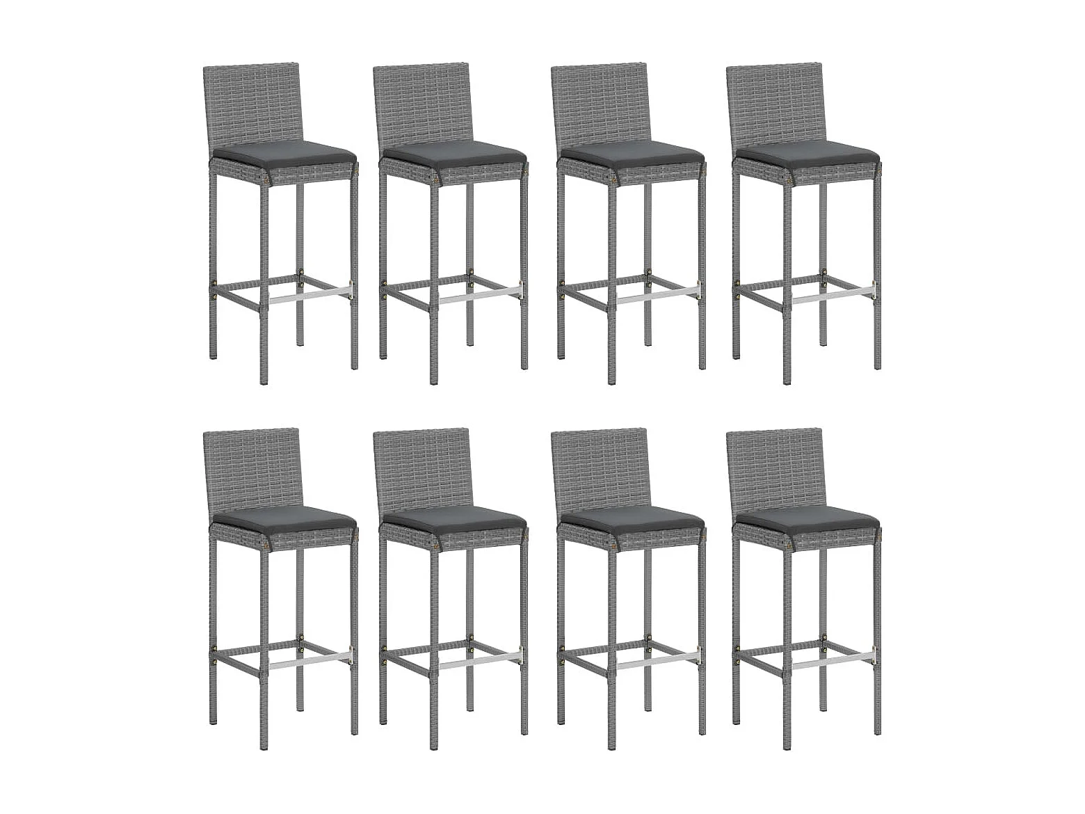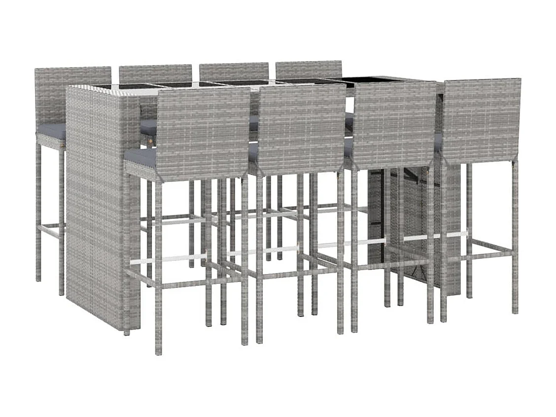 Eva Lynn Ensemble de bar de jardin 9 pcs avec coussins gris poly rotin