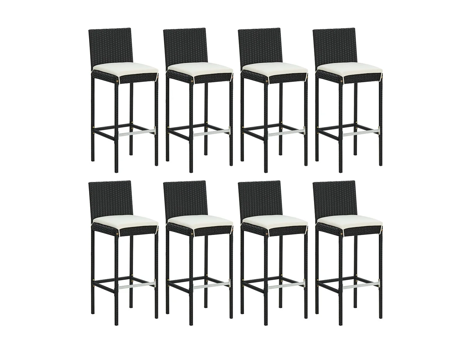 Eva Lynn Ensemble de bar de jardin 9 pcs avec coussins noir poly rotin