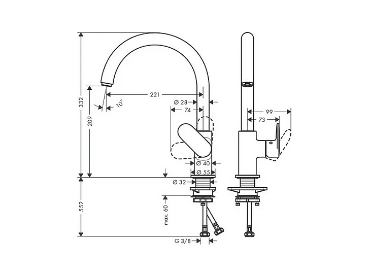 Evier 1 bac 980 HANSGROHE S52 synthèse noir + robinet de cuisine HANSGROHE Vernis Blend M35 210 noir mat