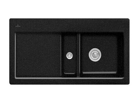 Evier 1 cuve et demi VILLEROY ET BOCH Subway 60 100 x 51 cm egouttoir a gauche Chromite CeramicPlus avec vidage manuel
