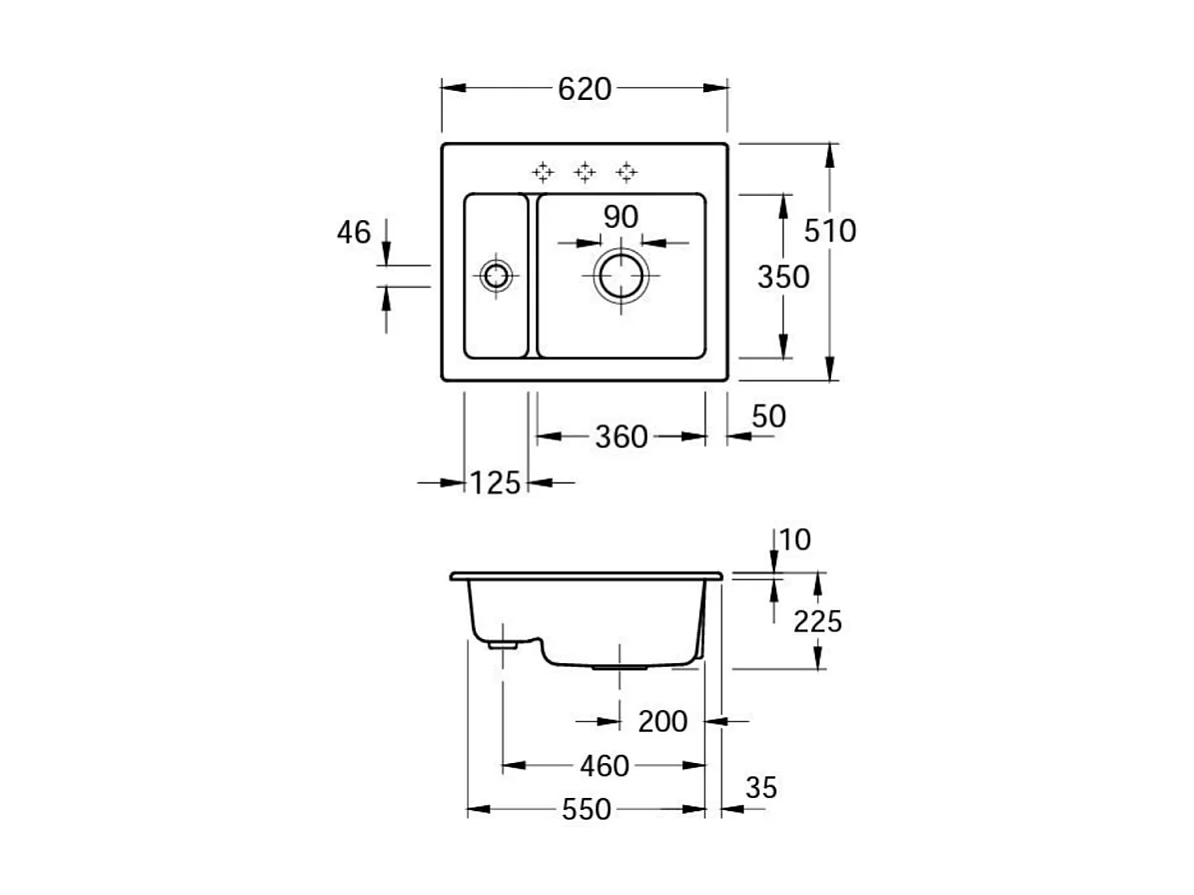 Evier 1 cuve et demi VILLEROY ET BOCH Subway 60 XM 62 x 51 cm sans egouttoir Snow White CeramicPlus avec vidage automatique
