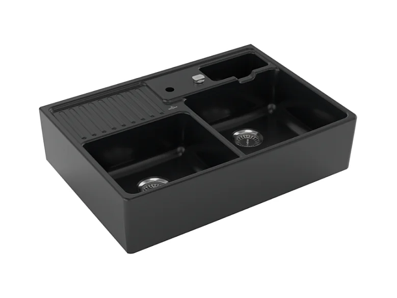 Evier 2 bacs timbre office VILLEROY ET BOCH Tradition Pure Black CeramicPlus avec vidage automatique