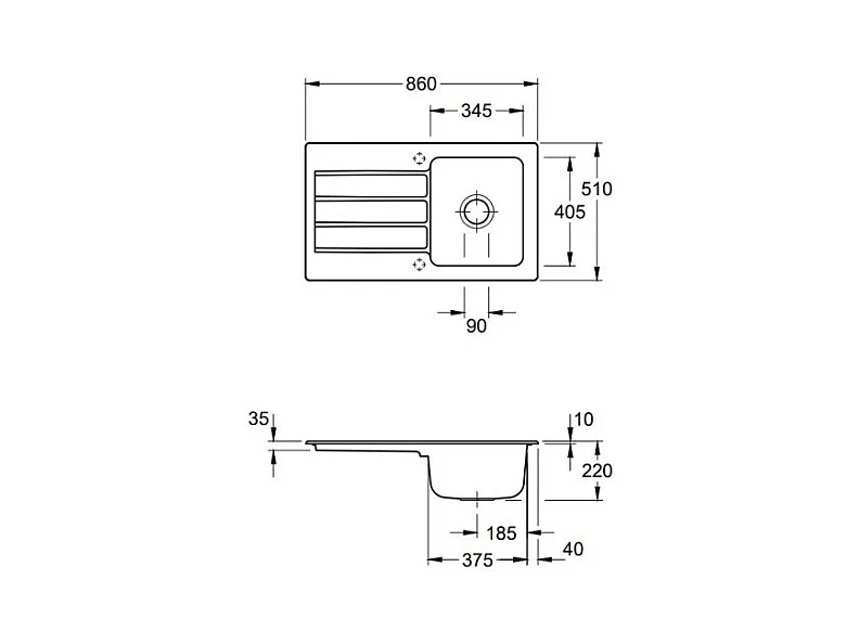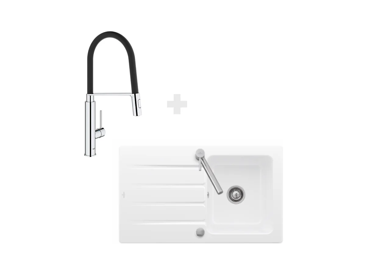 Evier 86 x 51 cm VILLEROY ET BOCH Architectura 50 Blanc + Robinet cuisine GROHE Concetto